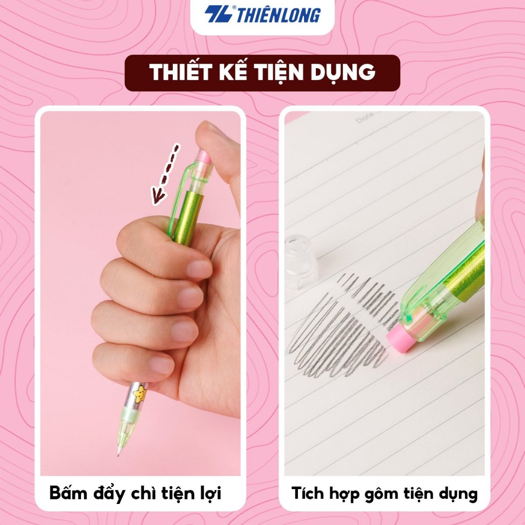 Set 4 bút chì kim bấm Thiên Long PC-018 / Chì kim PC018 đầu bút có tẩy