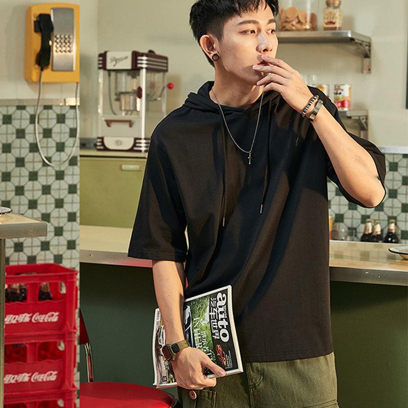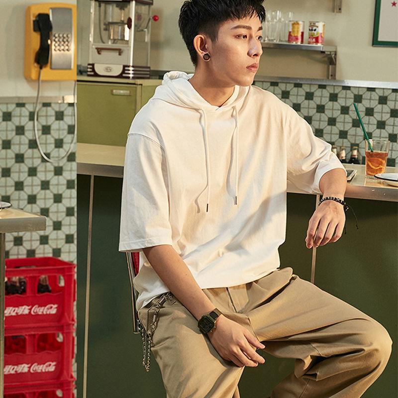 Áo Hoodie Tay Ngắn Màu Trơn Thời Trang Dành Cho Nam