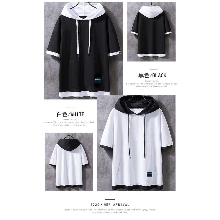 Áo Hoodie Tay Ngắn 100% Cotton Thời Trang Mùa Hè Hàn Quốc Cho Nam