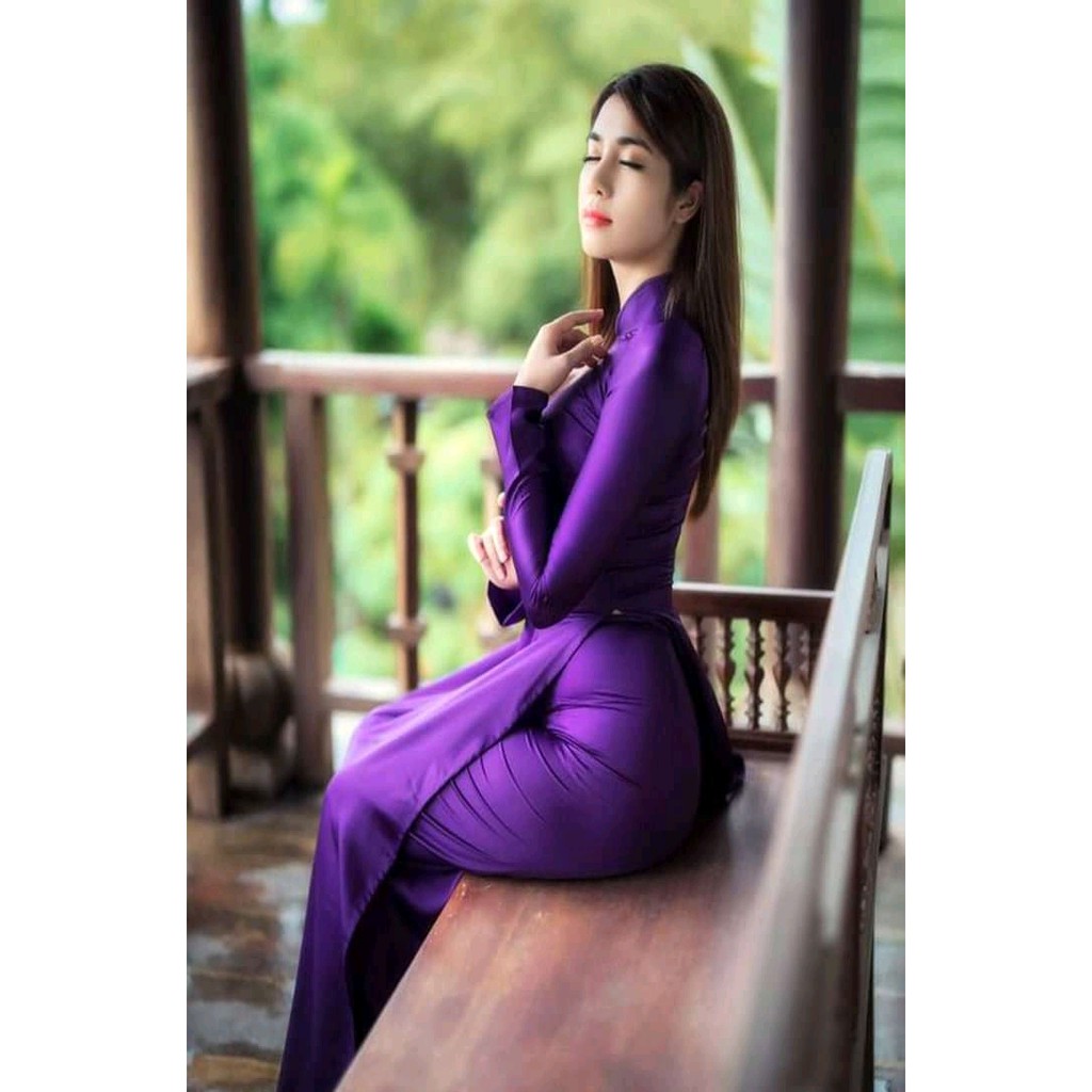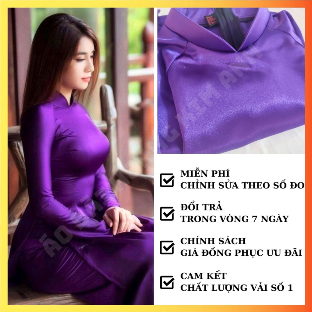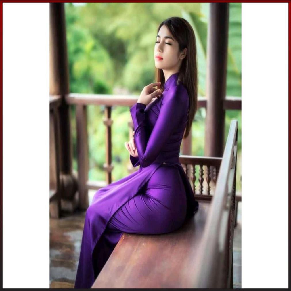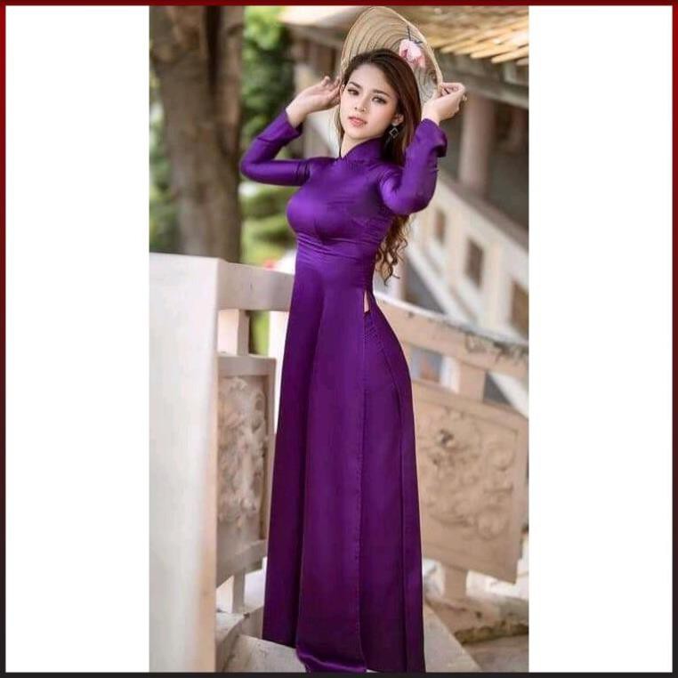 [HÀNG LOẠI 1] ÁO DÀI TRUYỀN THỐNG TÍM PHI BÓNG PHƯỚC THỊNH CO DÃN KÈM QUẦN, ÁO DÀI MAY SẴN CÓ BIGSIZE ADT2TPB-Tím
