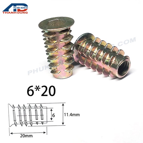 Ốc Cấy Gỗ Có Vành ( K VÀNH) M6x20[GỐI 50 CON]