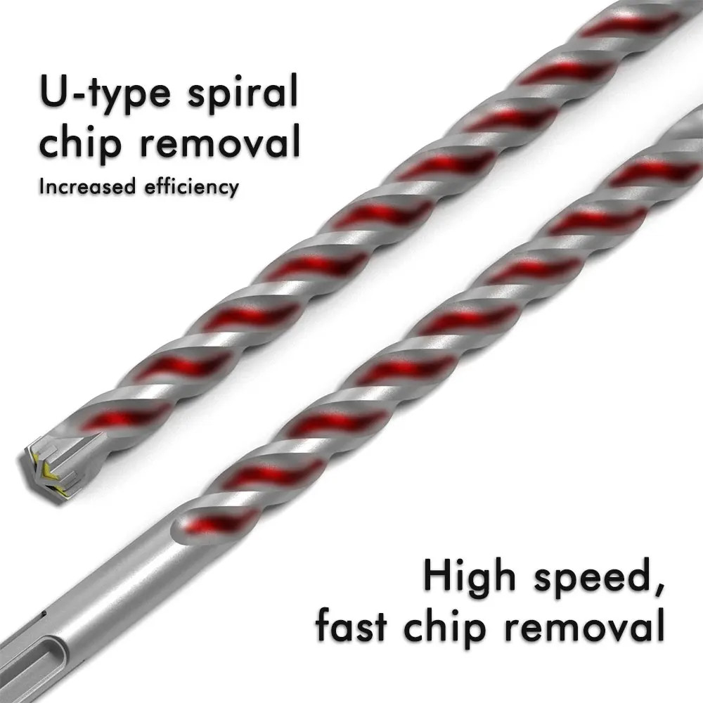 Mũi khoan búa quay 280-370mm SDS-MAX với sáu lưỡi tốt hơn để khoan tường bê tông gia cố Đường kính đá 18-35mm