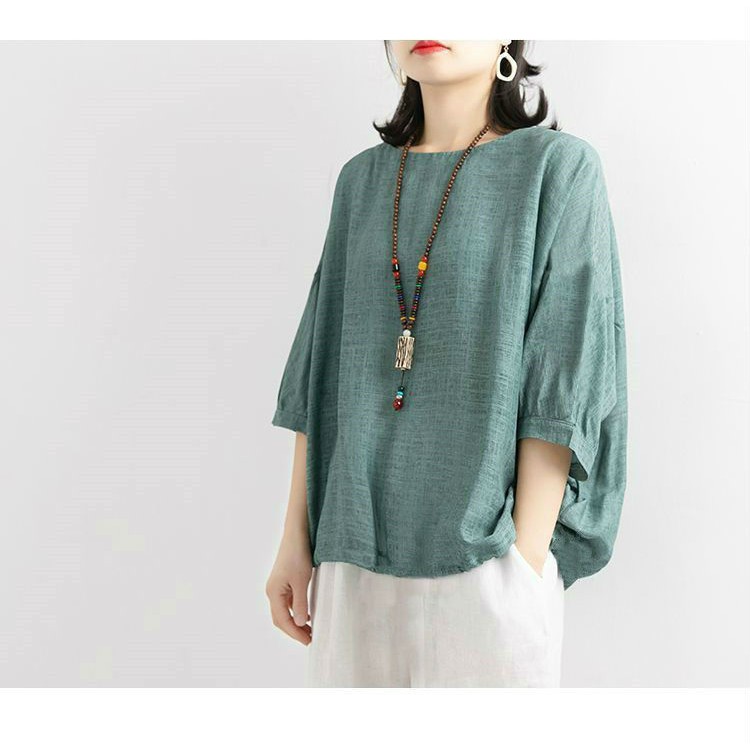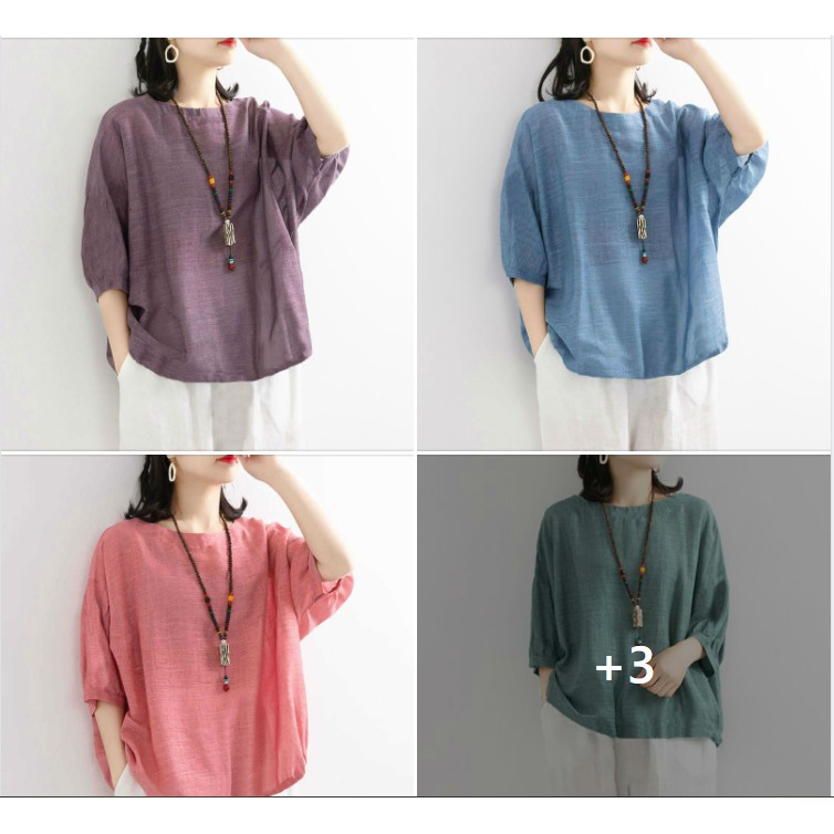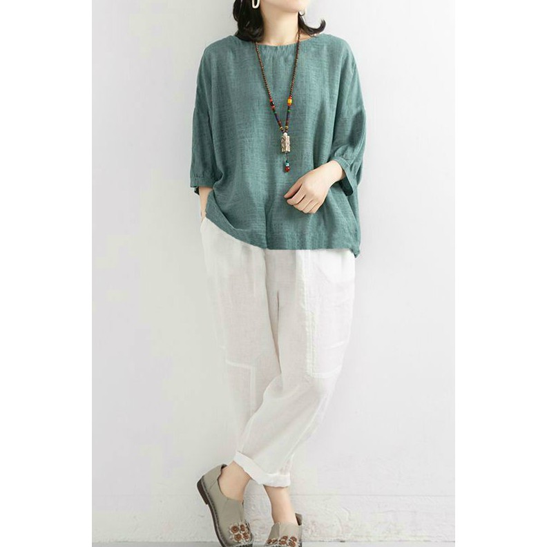 Áo thun nữ cổ tròn công sở dáng rộng trơn 1 màu cực dễ mặc