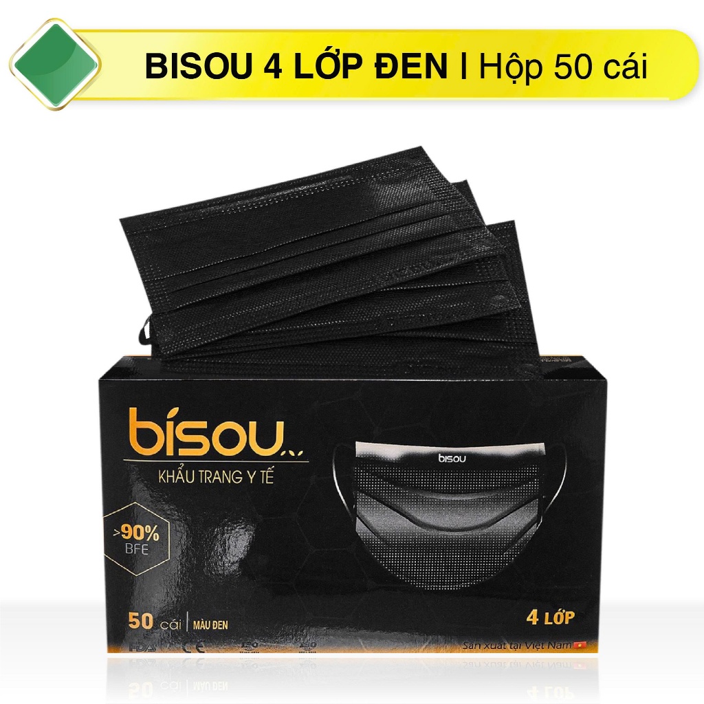 Khẩu trang y tế 4 lớp cao cấp Bisou người lớn ( Hộp 50 Cái)
