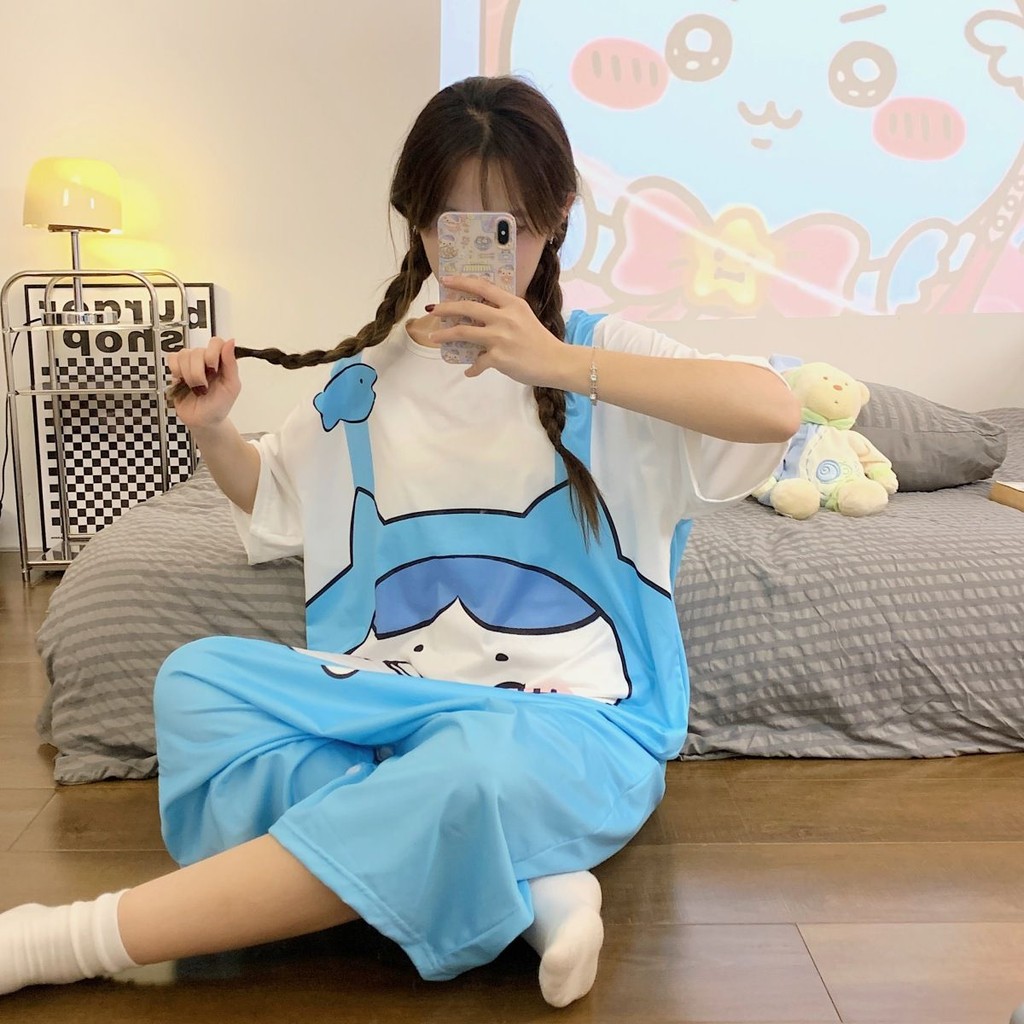 Dễ thương bộ đồ ngủ Chiikawa Usagi, mỏng mát cho mùa hè, phù hợp học sinh sinh viên plus size
