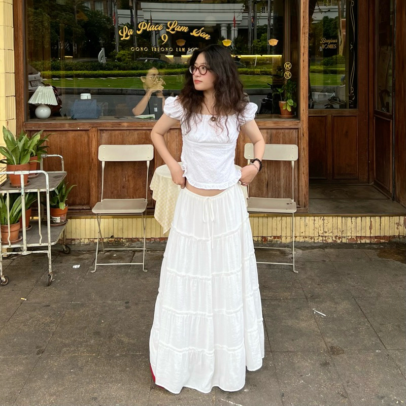 Chân váy dài xòe nhiều tầng Trắng Đen Lita Skirt - Aufra studio