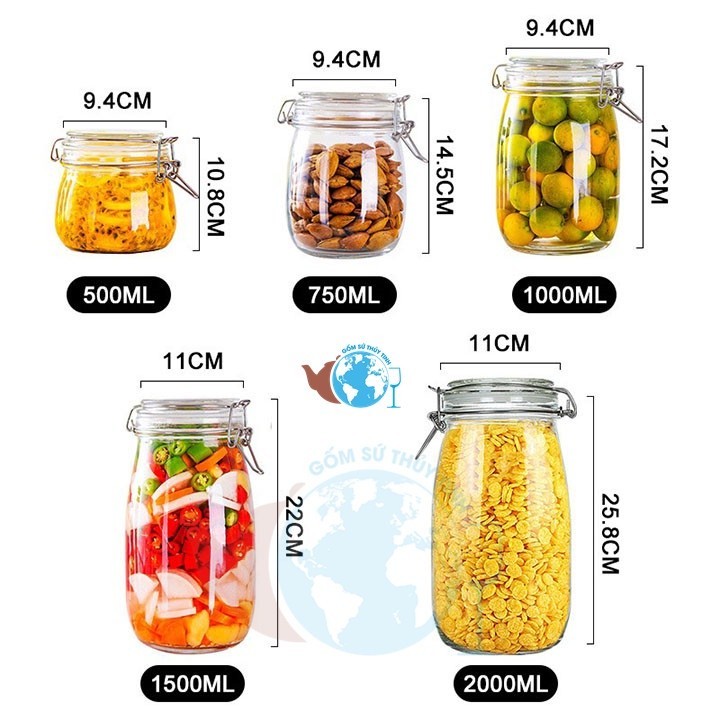 Hũ nắp gài 3 lít , hũ thủy tinh 3L nắp gài loại lớn đựng thực phẩm, bình ngâm thực phẩm