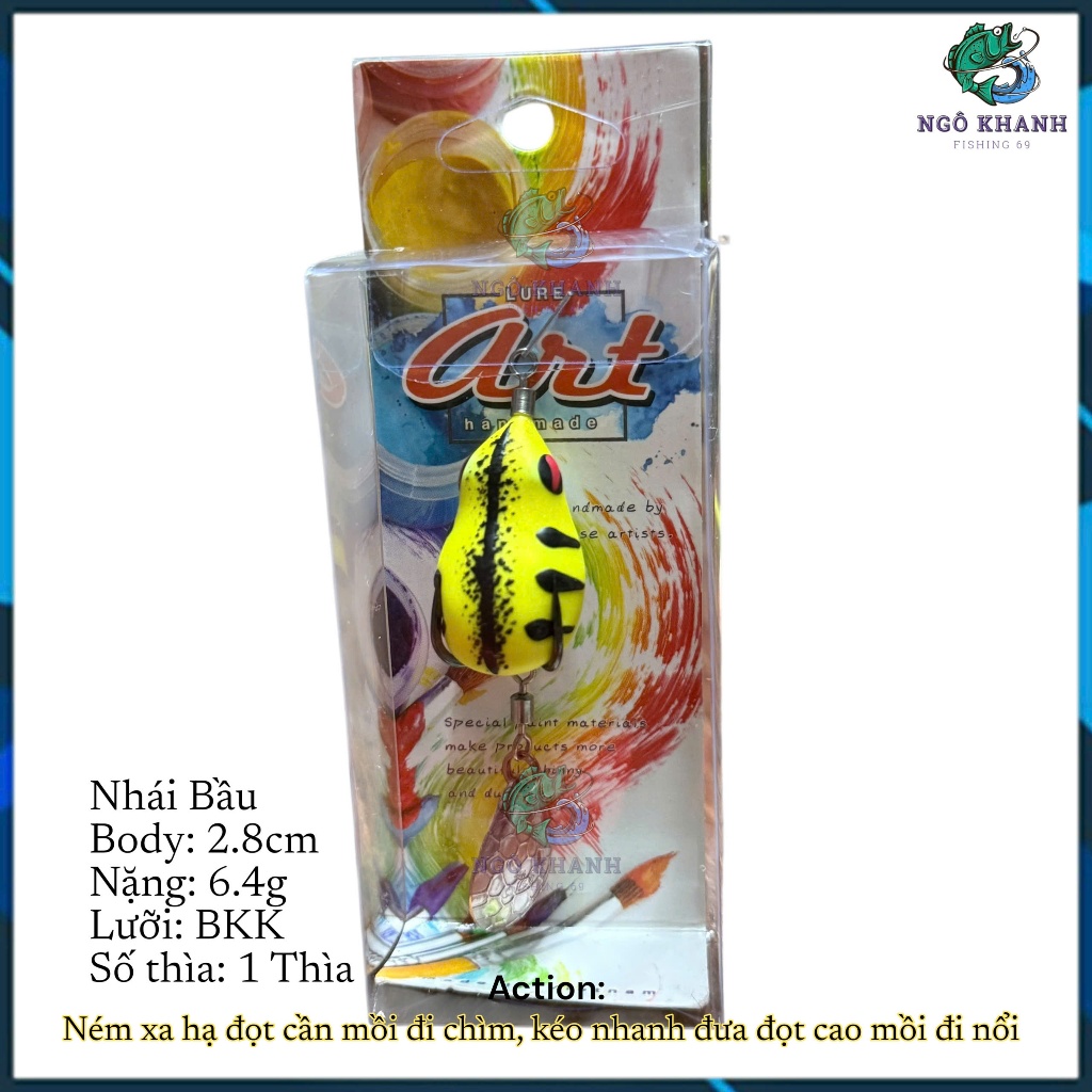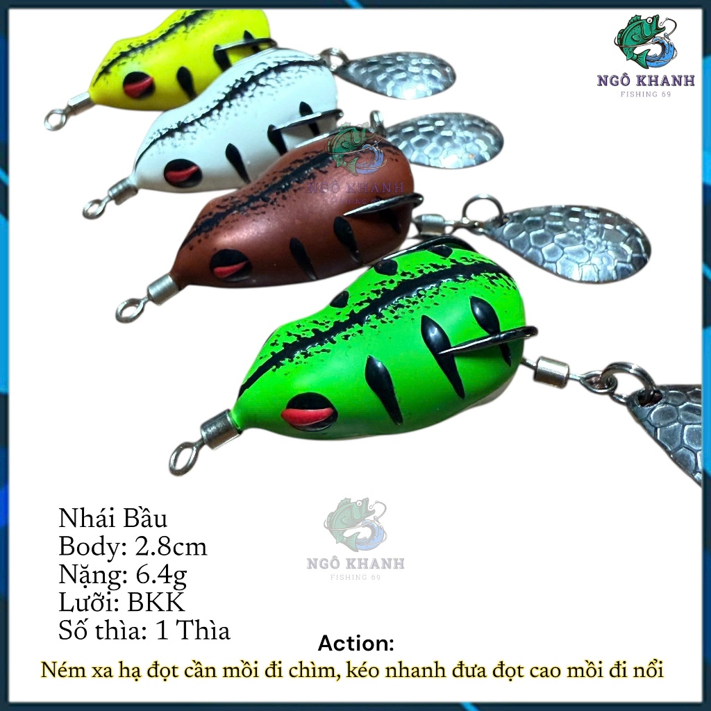 Mồi câu cá lóc Nhái Bầu 2.8cm - nặng 6.4g , nhái hơi lure lóc cao su Thái Lan