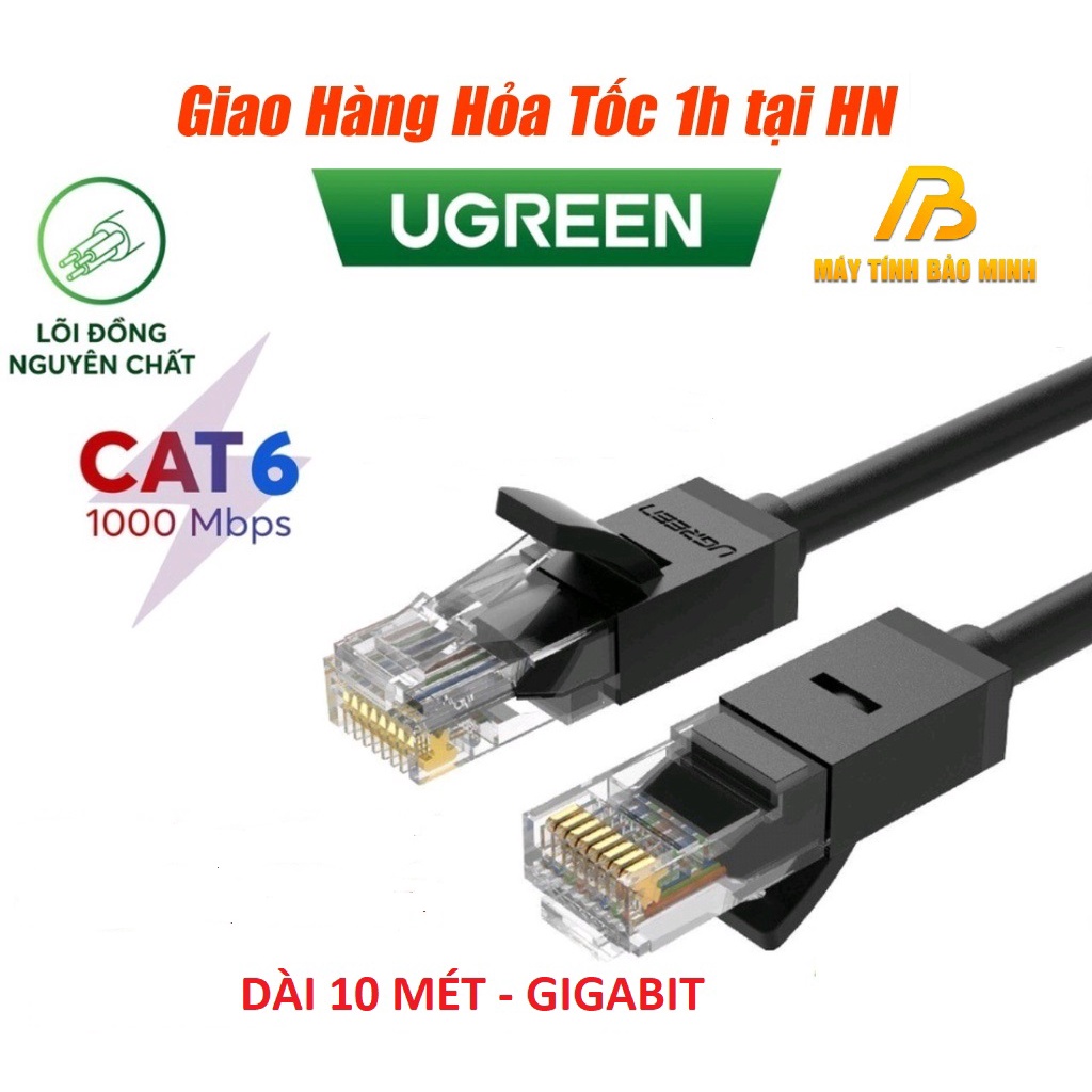 Cáp mạng Cat6 Dài 10m Ugreen 20164 đúc sẵn 2 đầu Gigabit - Hàng Chính Hãng