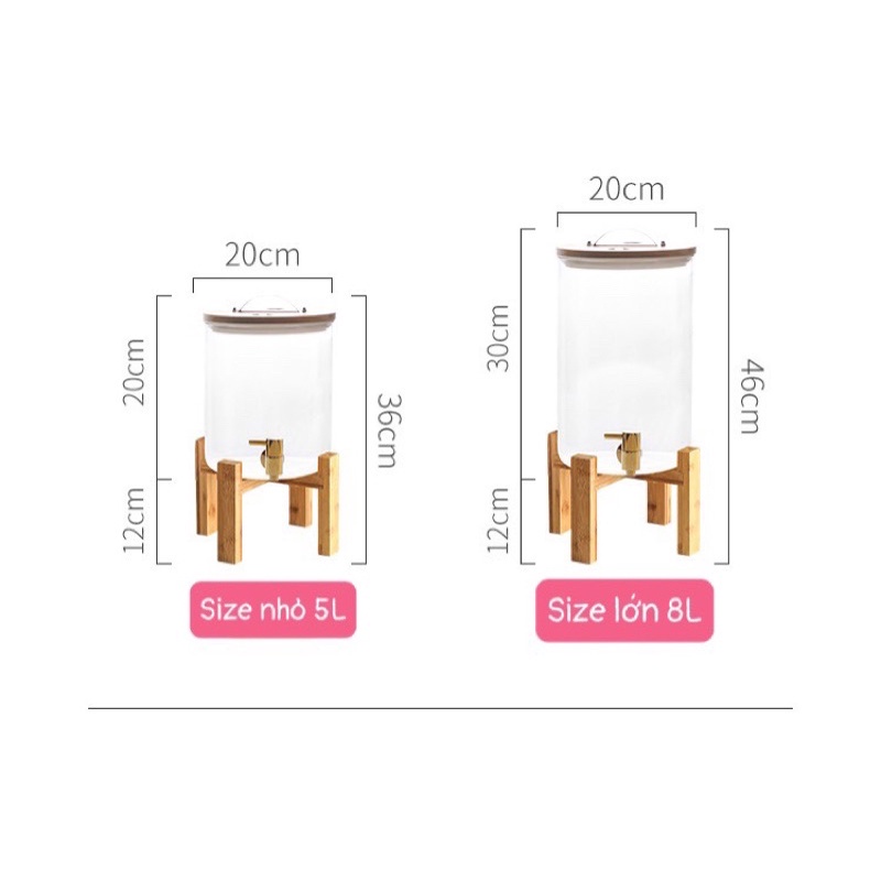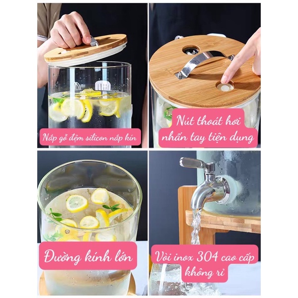 Bình Thủy Tinh Vòi Inox 5L-8L MINT DECOR, Đựng Nước, Hoa Quả, Detox