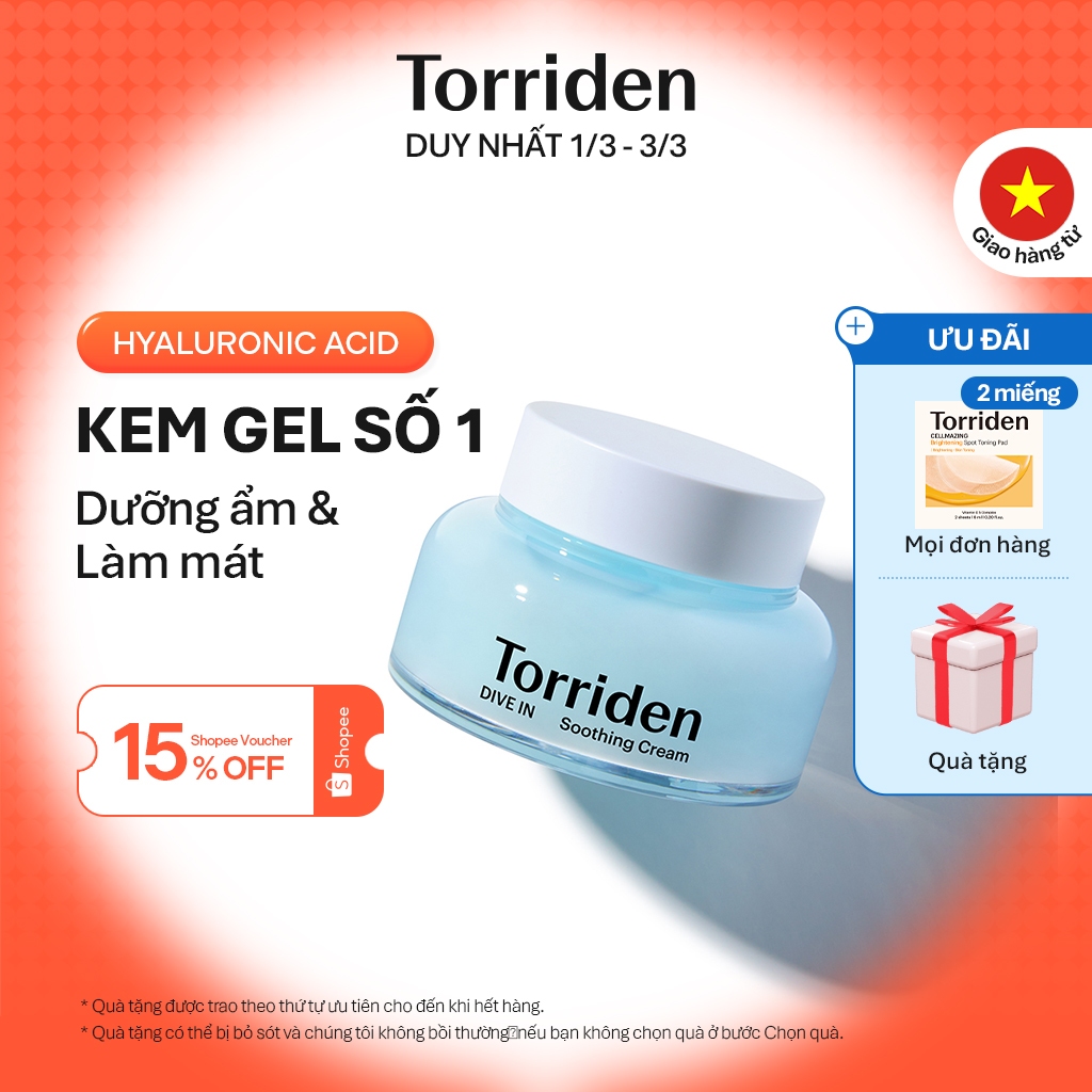 [Torriden Chính hãng] Kem dưỡng làm dịu da DIVE IN chứa Hyaluronic Acid, 100ml, Soothing Cream
