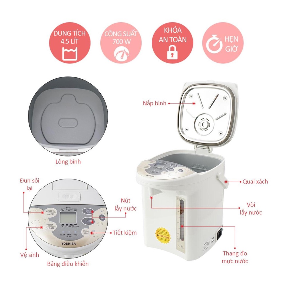 Bình thủy điện TOSHIBA PLK-45SF(WT)VN - Hàng bảo hành 12 tháng |HỎA TỐC HCM|