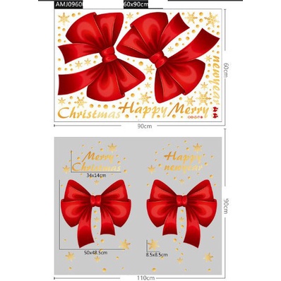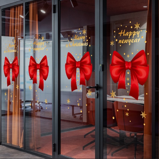 Decal trang trí Noel hít tĩnh điện - Cặp nơ đỏ rực trang trí Noel cực xinh