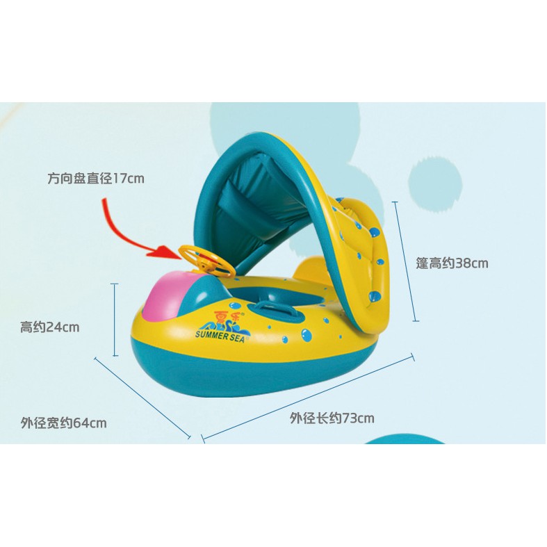 Phao Bơi Cho Bé Có Mái Che, Còi Bấm và Chống Lật