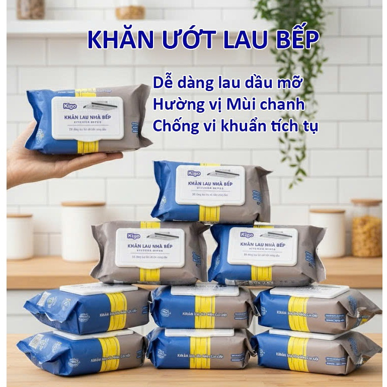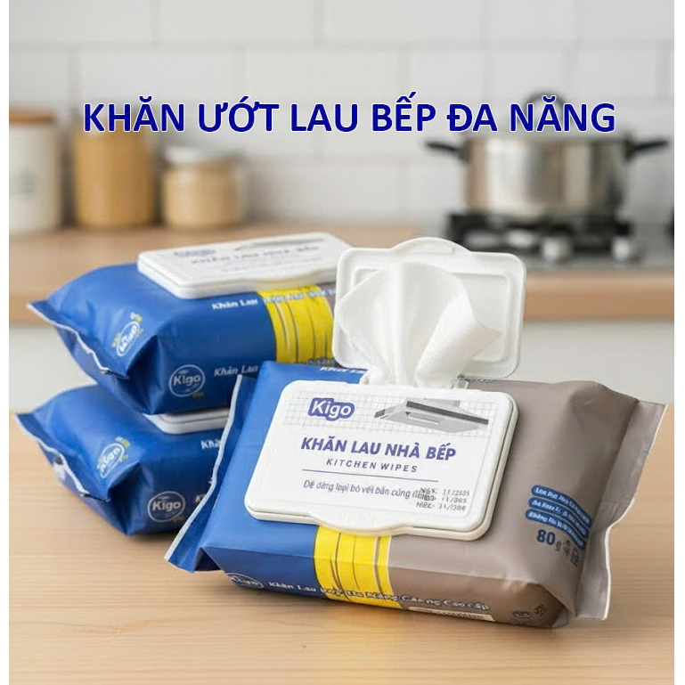 Thùng 10 gói khăn giấy ướt lau bếp 80 tờ đa năng không độc hại, an toàn với da