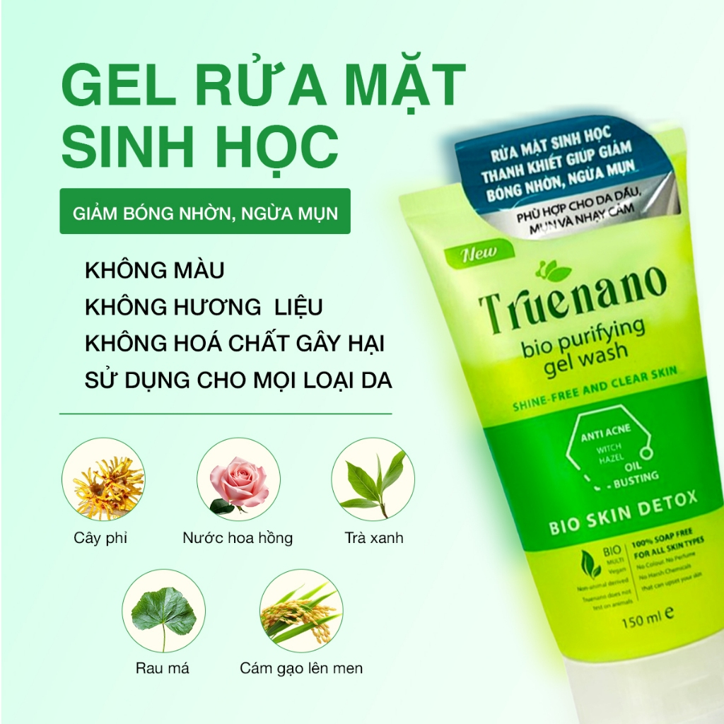 Gel rửa mặt TRUENANO - Rửa mặt sinh học thuần chay dịu nhẹ, lành tính 150ml