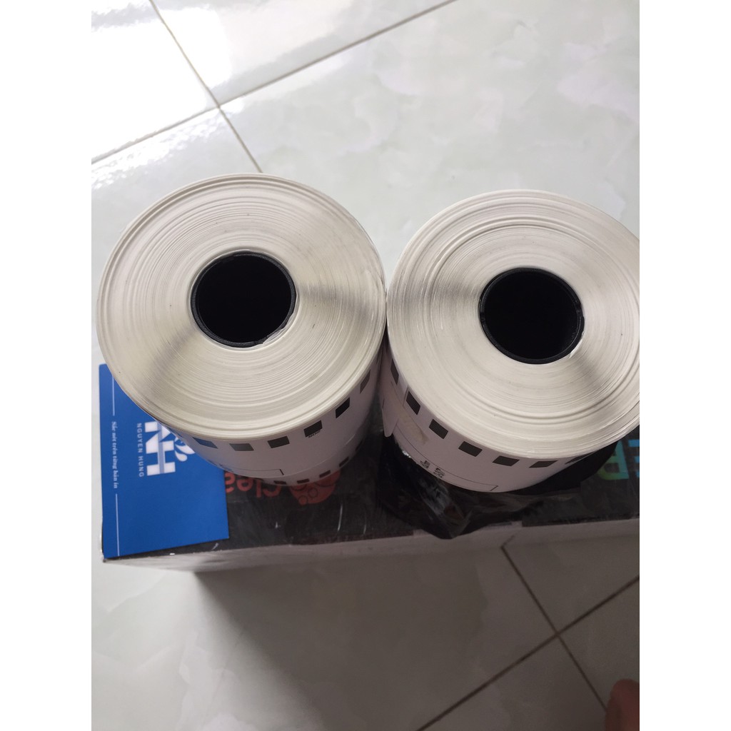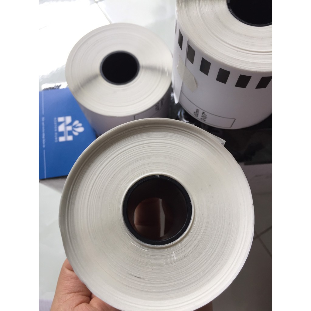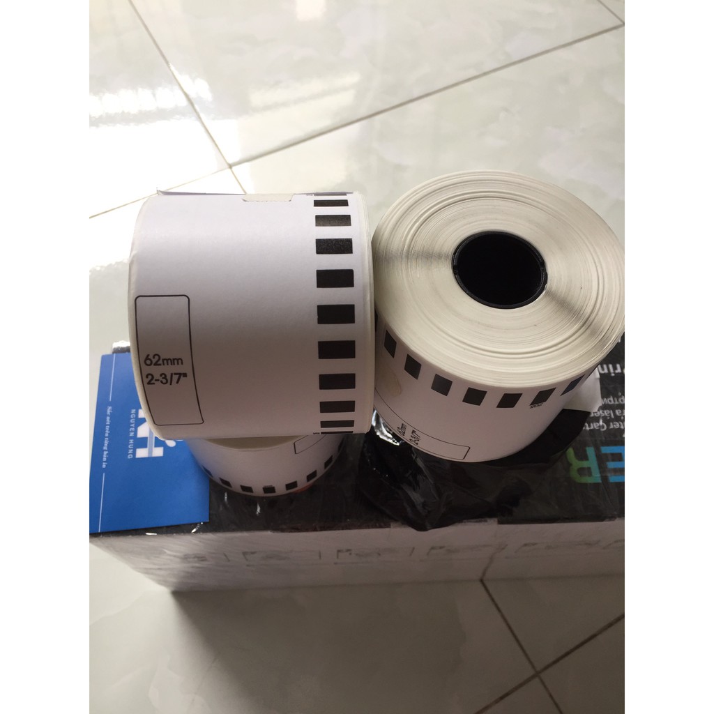 Giấy in nhãn Brother DK-22205, Rộng 62mm, Dài 30.48m, chữ đen nền trắng. Dùng cho máy in nhãn Brother dòng QL