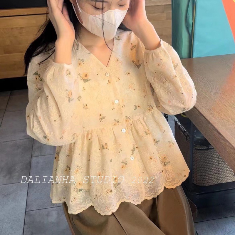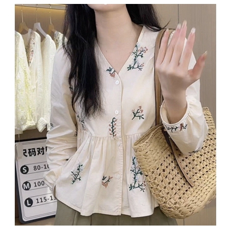 Áo Sơ Mi Nữ Tay Dài Phồng Thêu Hoa Phong Cách Hàn Quốc Baju Baju Wanita Lengan Panjang Hàng Mới Có Sẵn