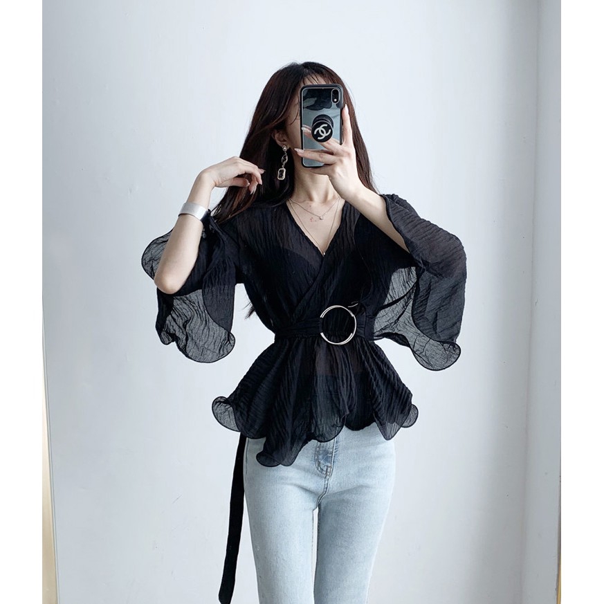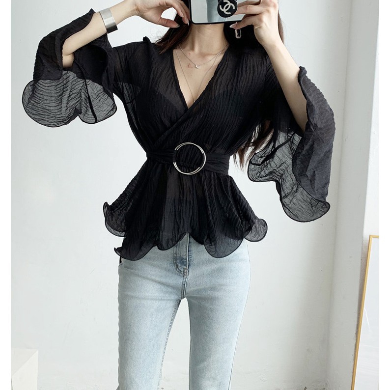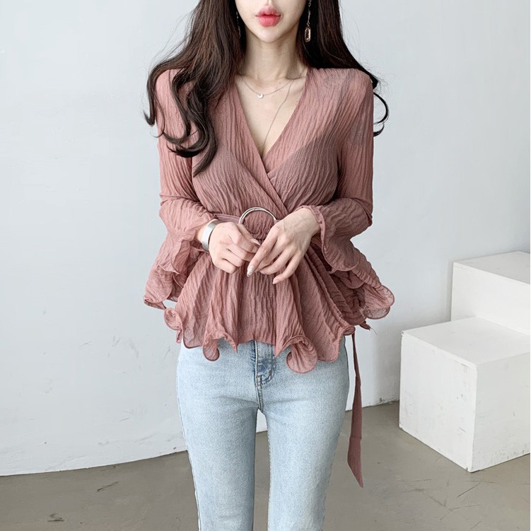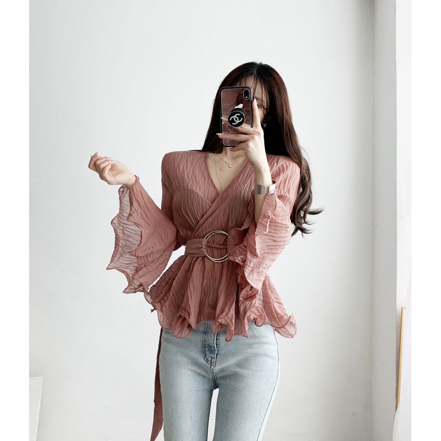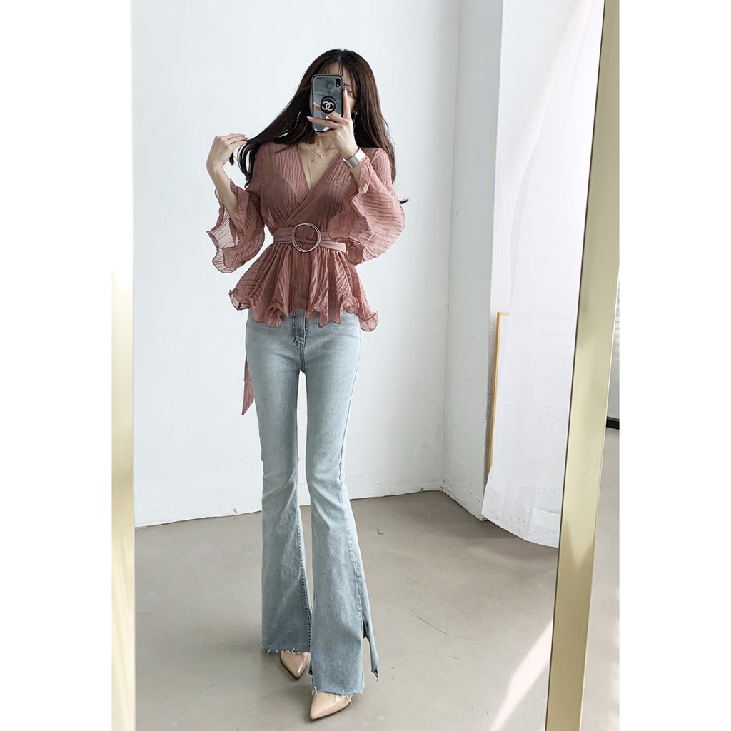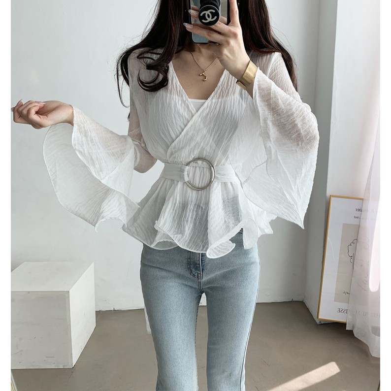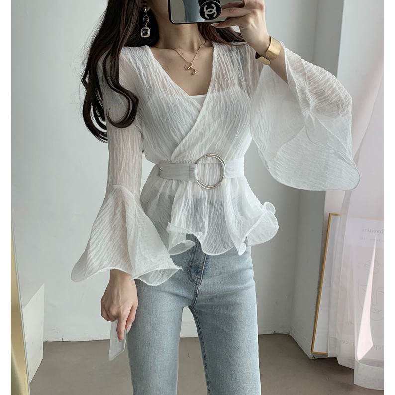 Áo Sơ Mi chiffon Tay Dài Dáng Ôm Phong Cách Hàn Quốc baju baju wanita Lenan panjang