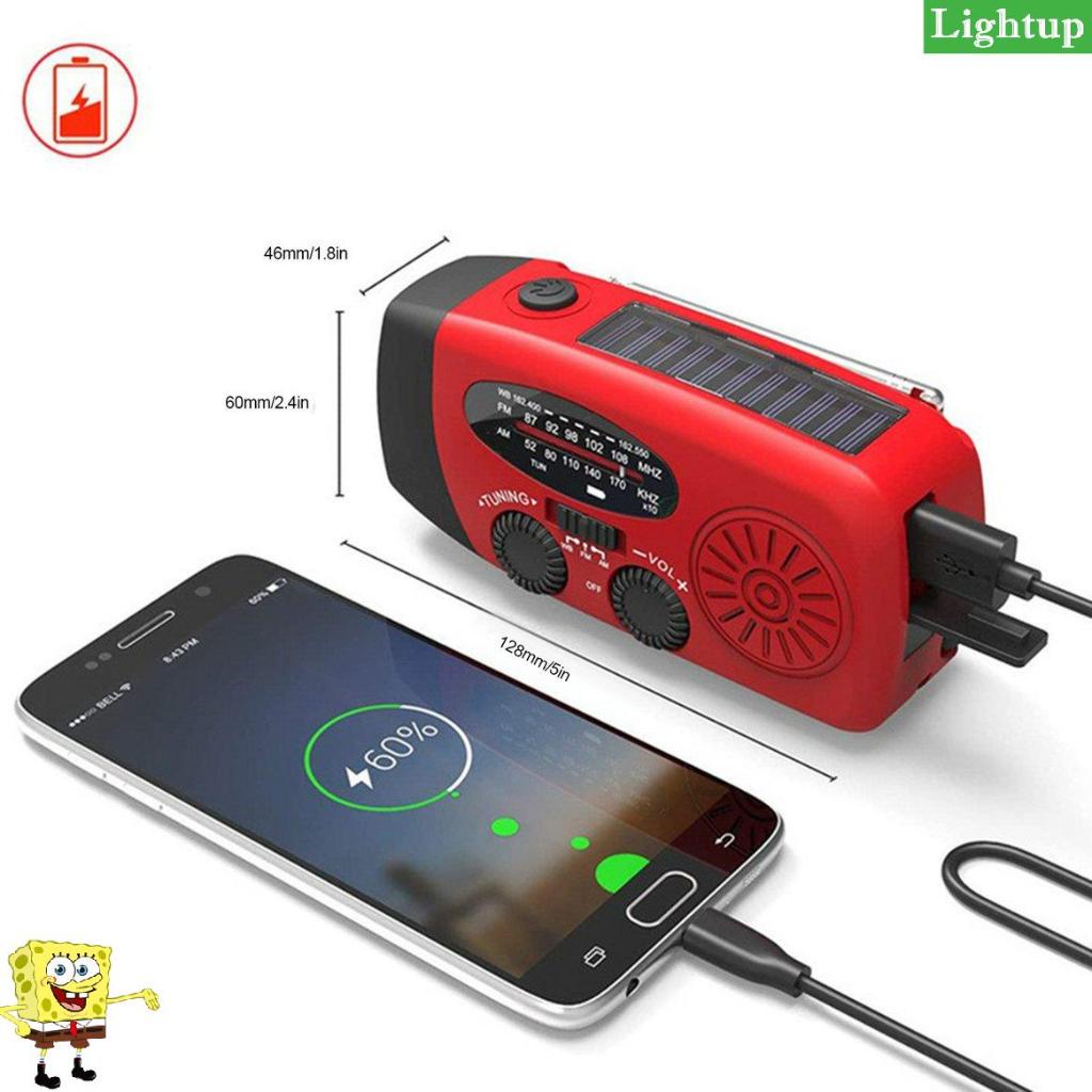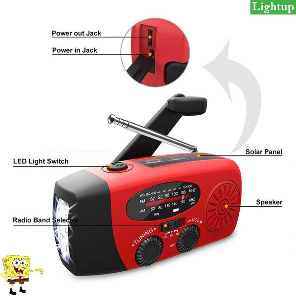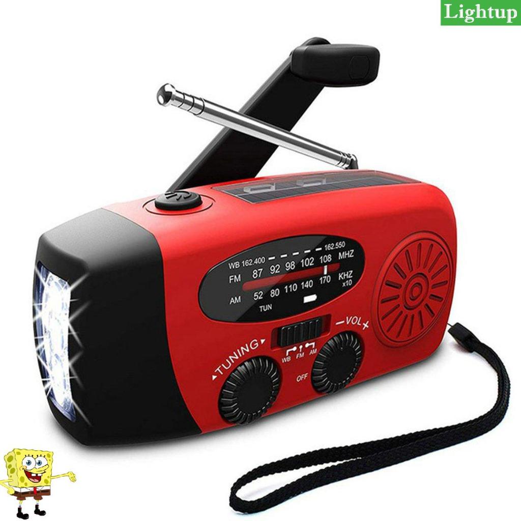 Đài FM/AM sạc năng lượng mặt trời, sạc bằng tay quay Dynamo, tích hợp Đèn pin LED