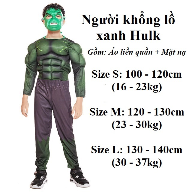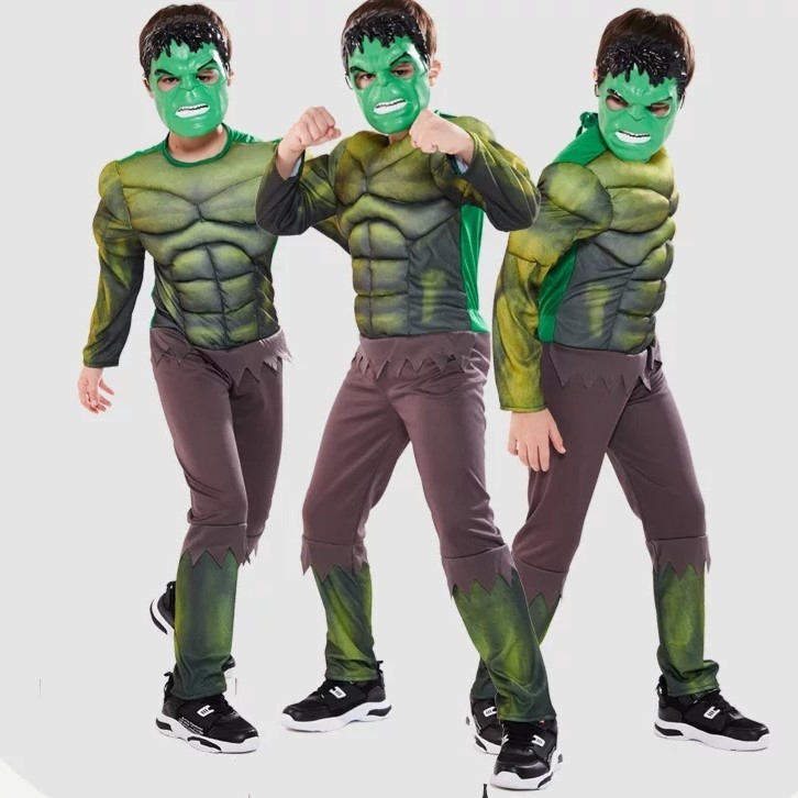 (Có Sẵn) Trang phục Hoá Trang quần áo bé trai Người Khổng Lồ Xanh Hulk Siêu Anh Hùng Cơ Bắp
