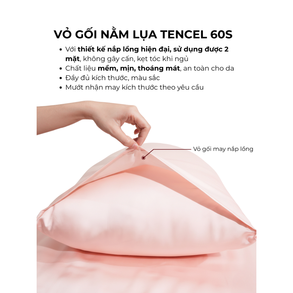 Vỏ gối Lụa Tencel 60s trơn màu 50x70 45x65 40x60 35x50cm Mướt Bedding áo gối 100% Tencel đầy đủ size