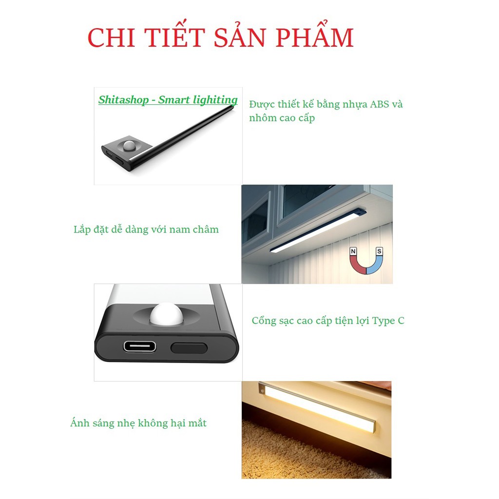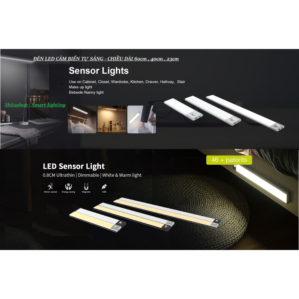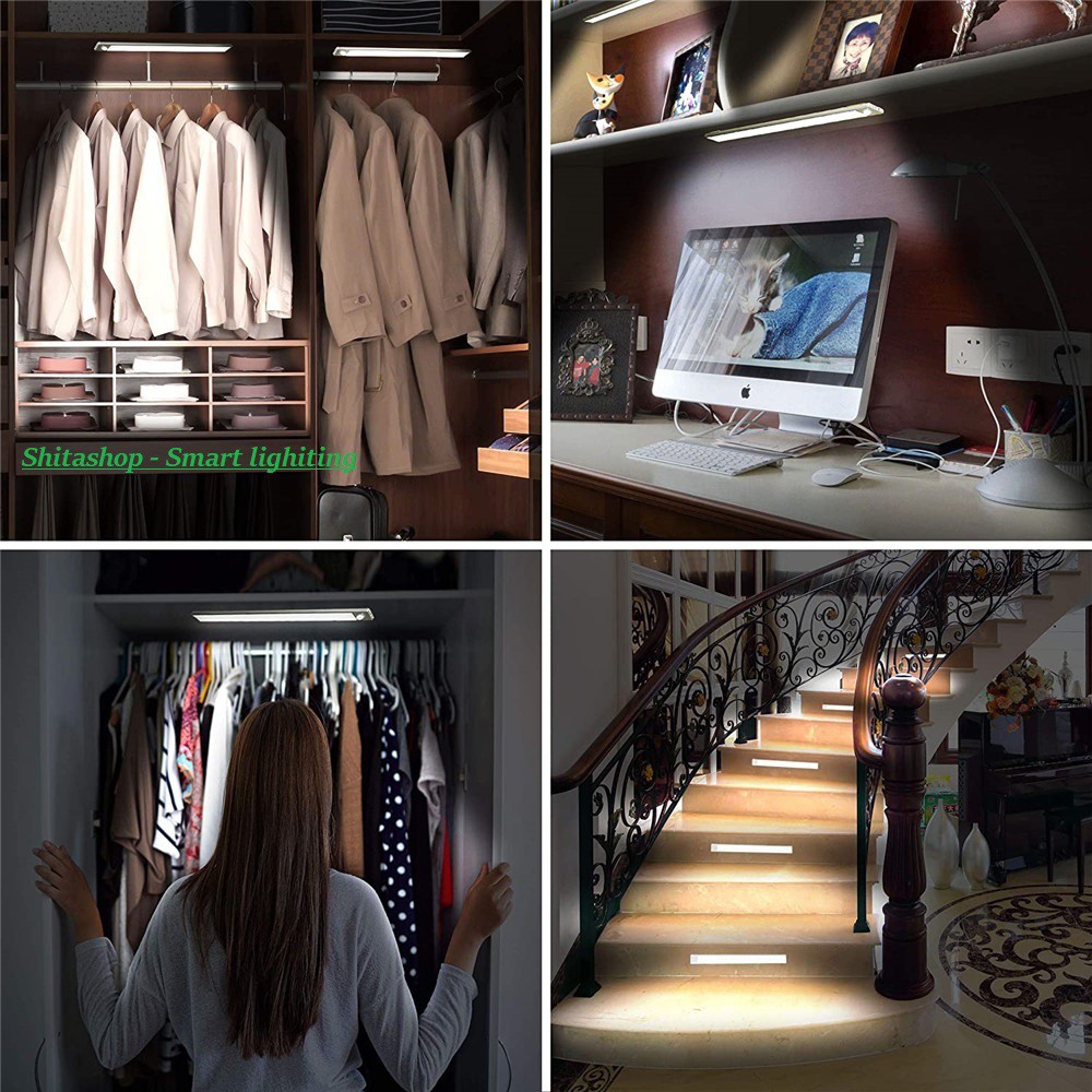 Đèn LED gắn tủ tự động sáng , pin sạc dài 60cm 40cm 23cm dùng gắn tủ quần áo , tủ chén , cầu thang tích hợp pin sạc