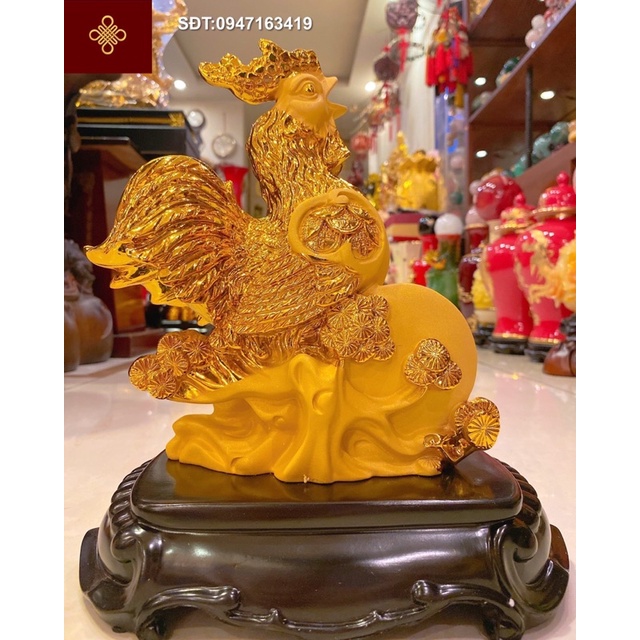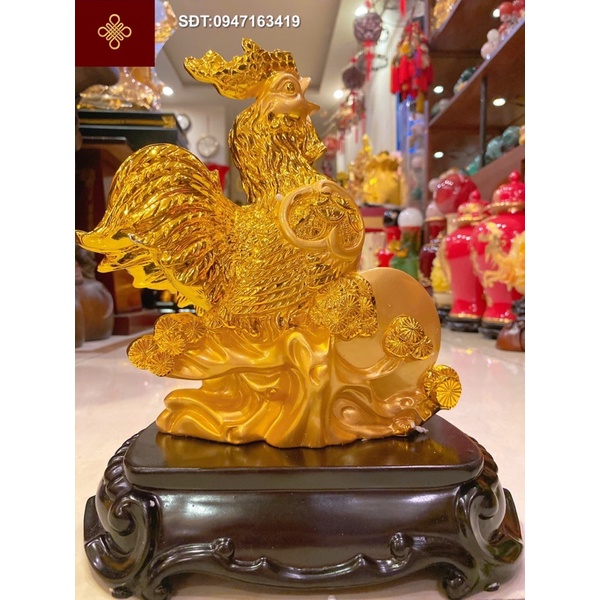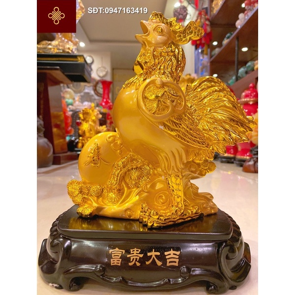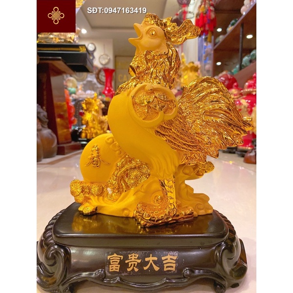 Tượng Gà Phong thuỷ màu vàng bóng/kim sa (cao 30, dài 22, rộng 14)