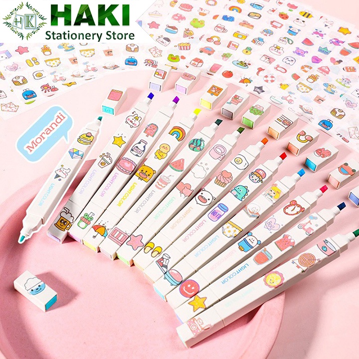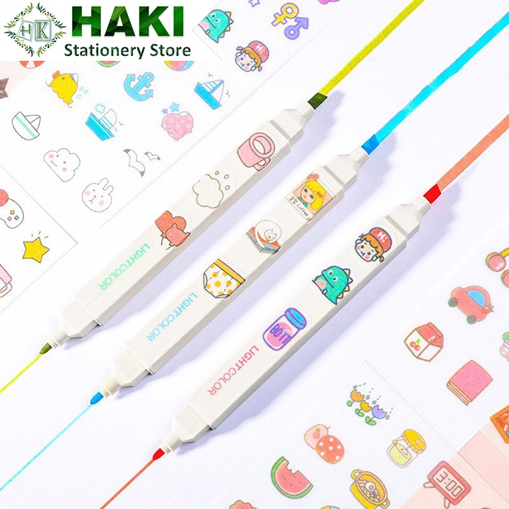 Bút highlight pastel 2 đầu HAKI, bút đánh dấu bút nhớ Light Color trang trí sổ bullet journal ( Lẻ 1 bút)