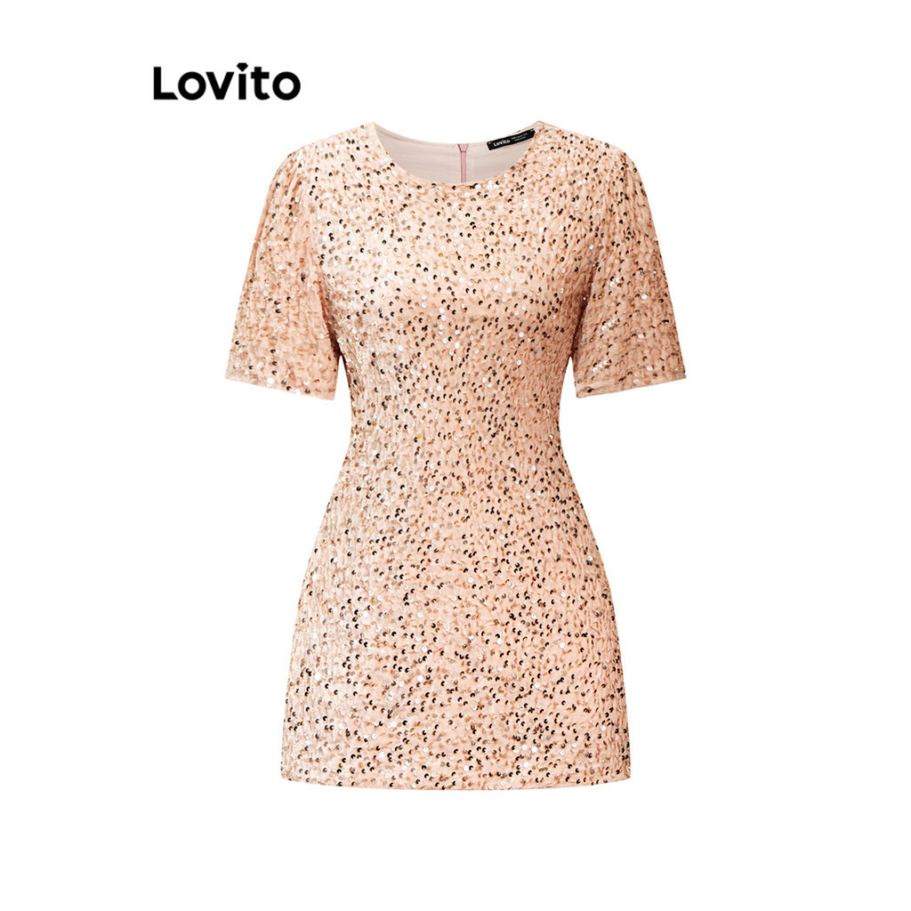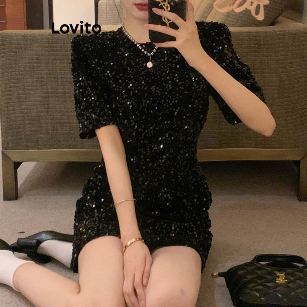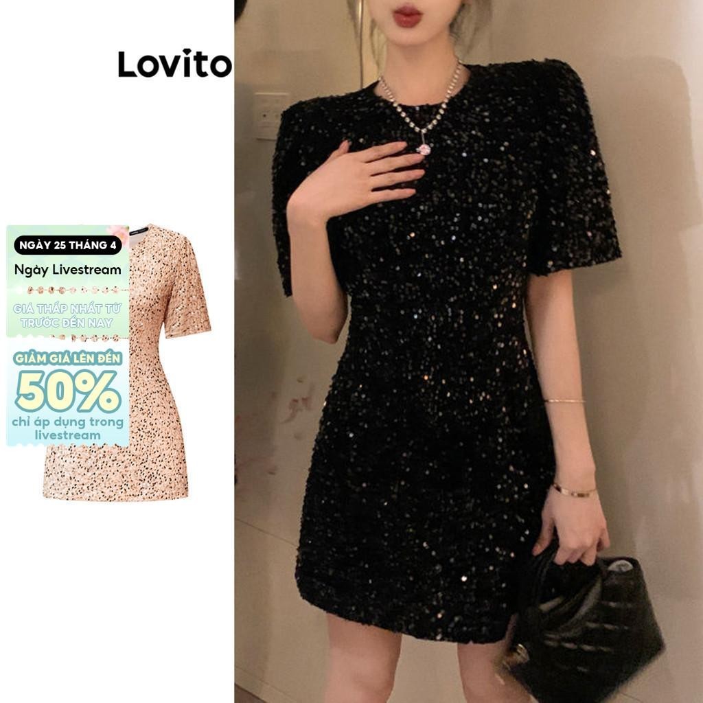 Lovito Đầm thường ngày Đầm Sequin trơn dành cho nữ LNA26116 (Đen)