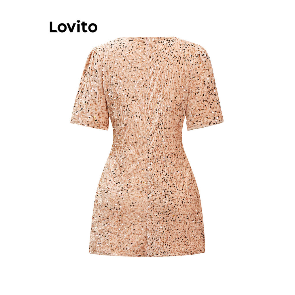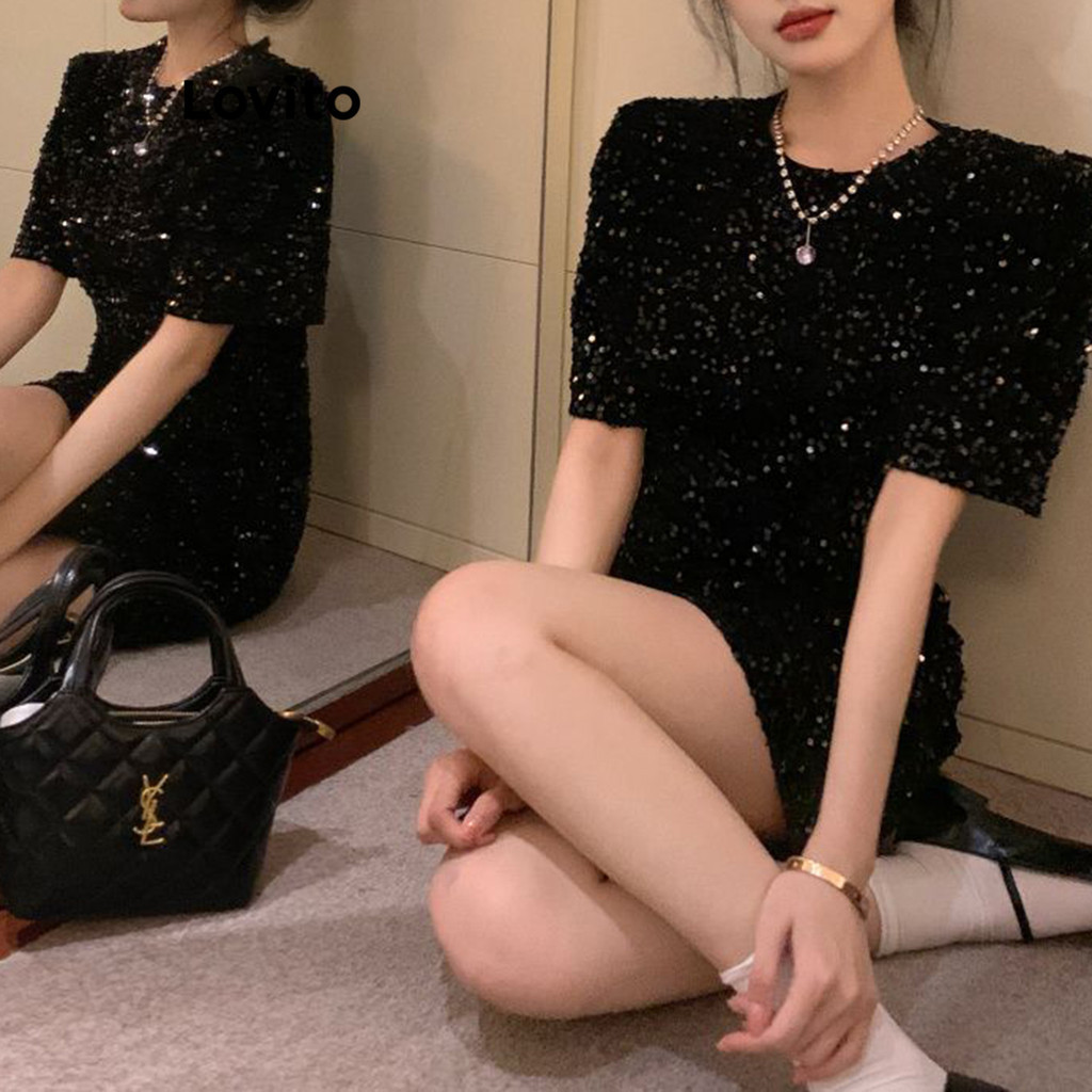 (Trendy) Lovito Đầm thường ngày Đầm Sequin trơn dành cho nữ LNA26116 (Đen)
