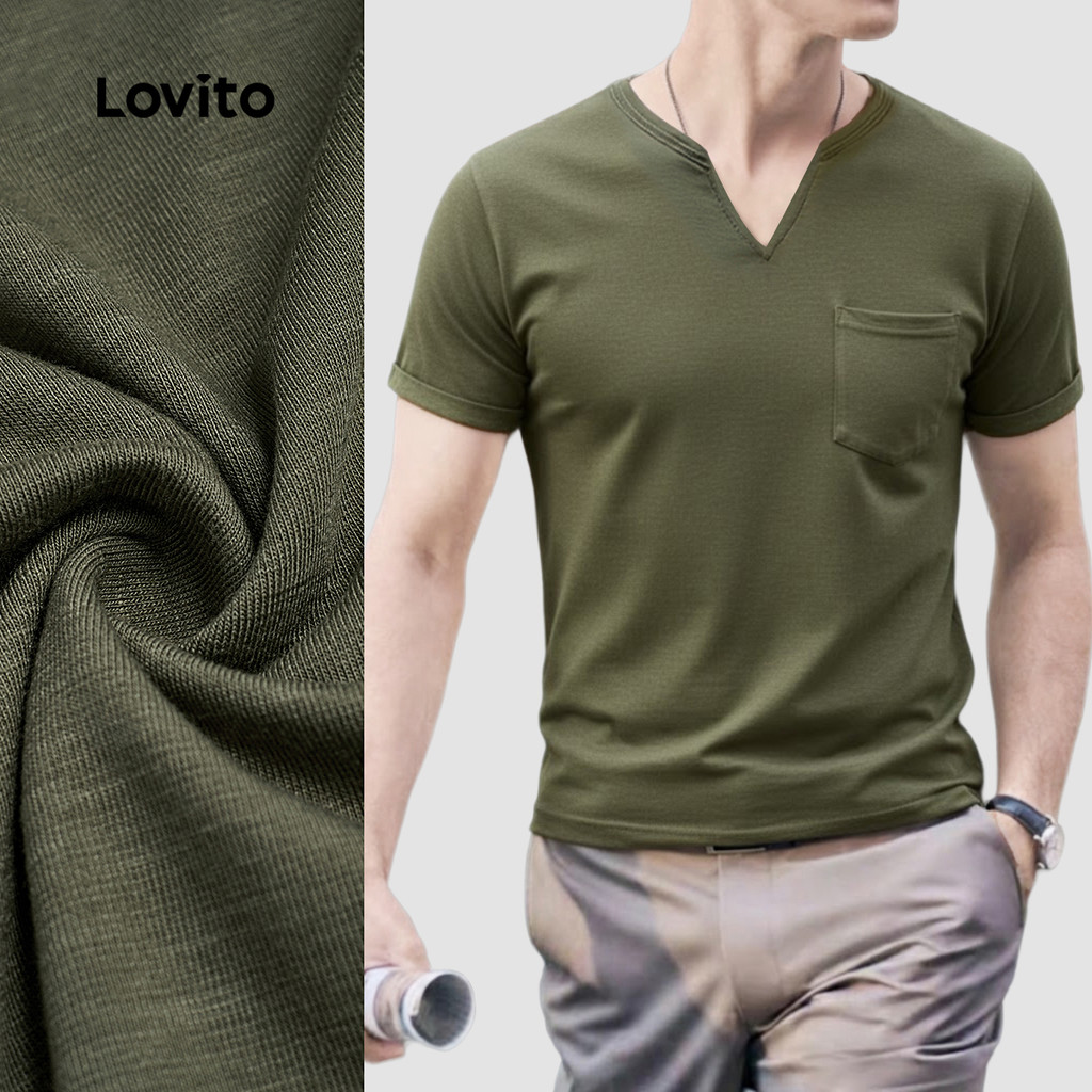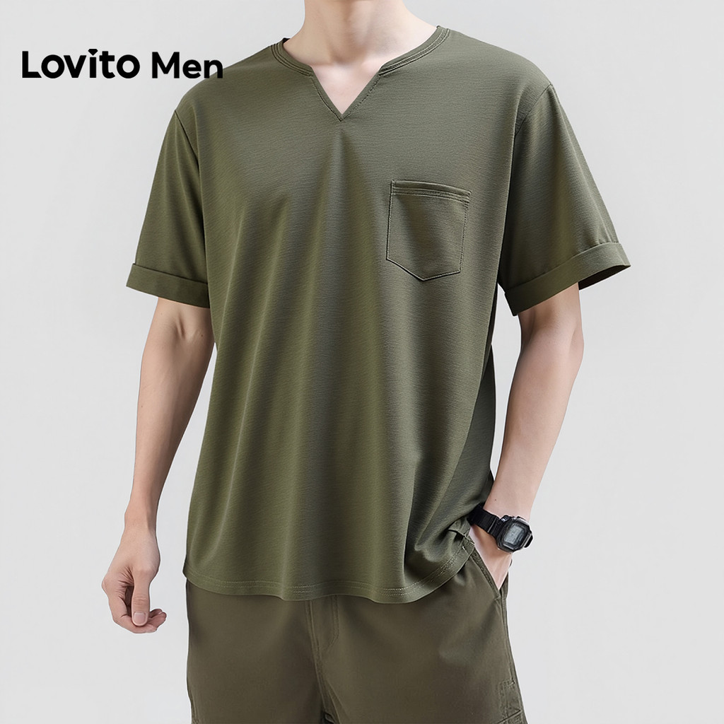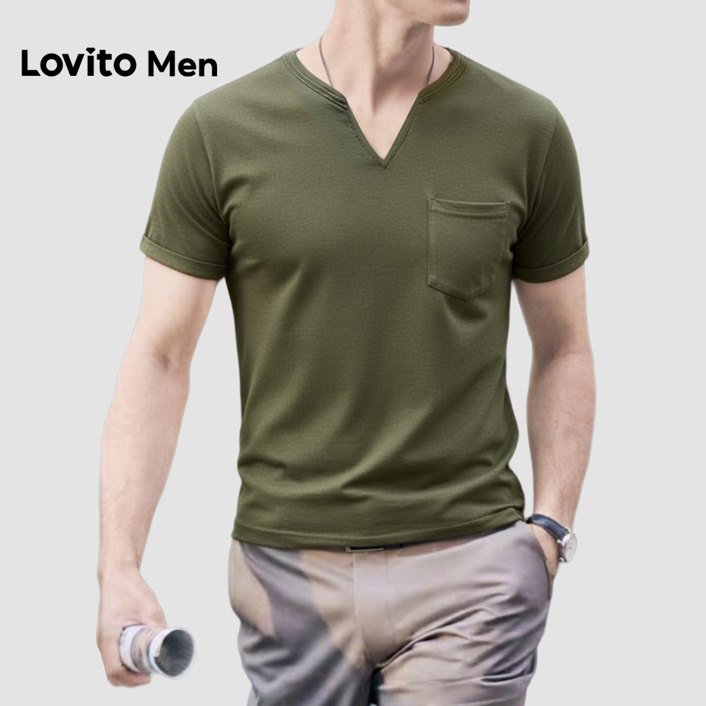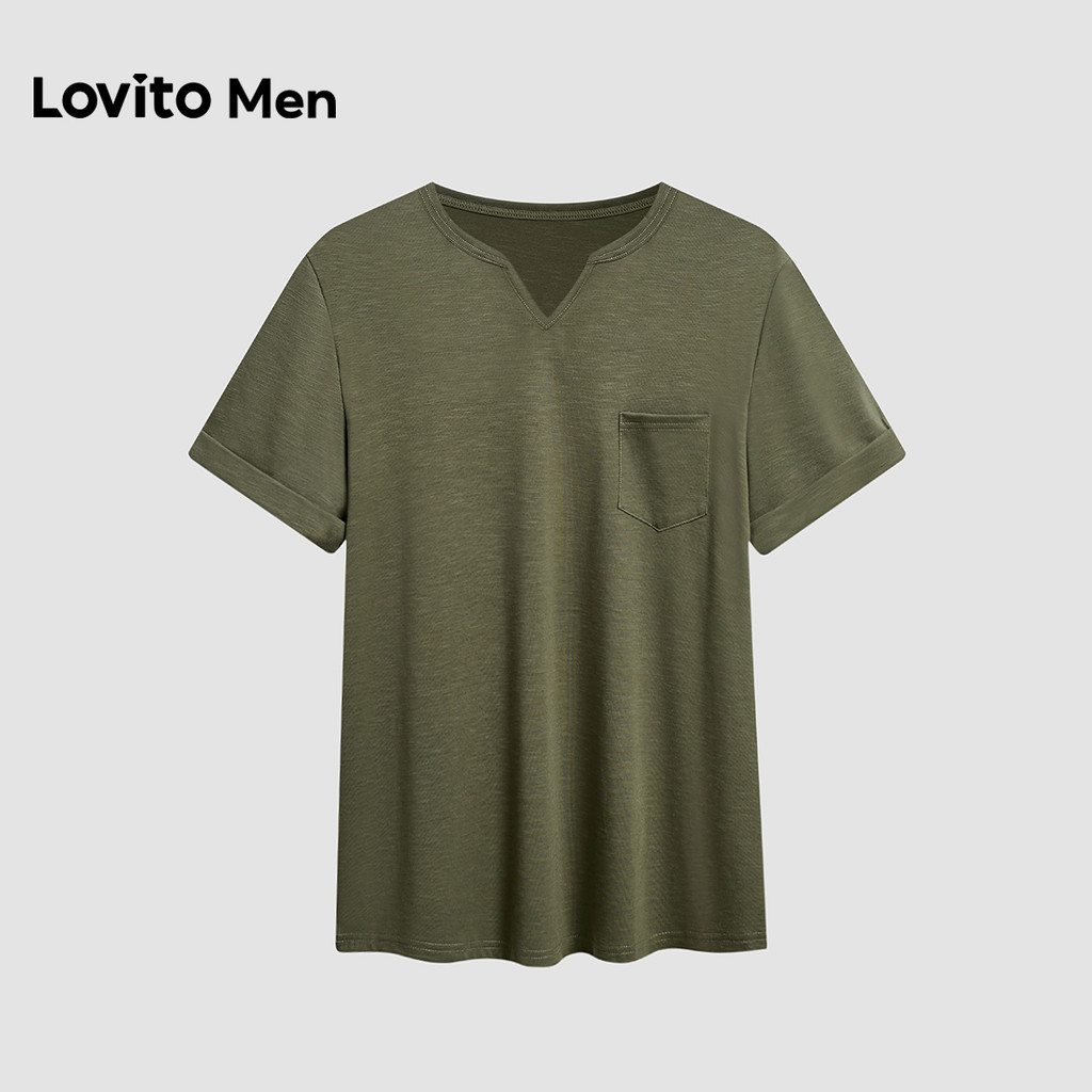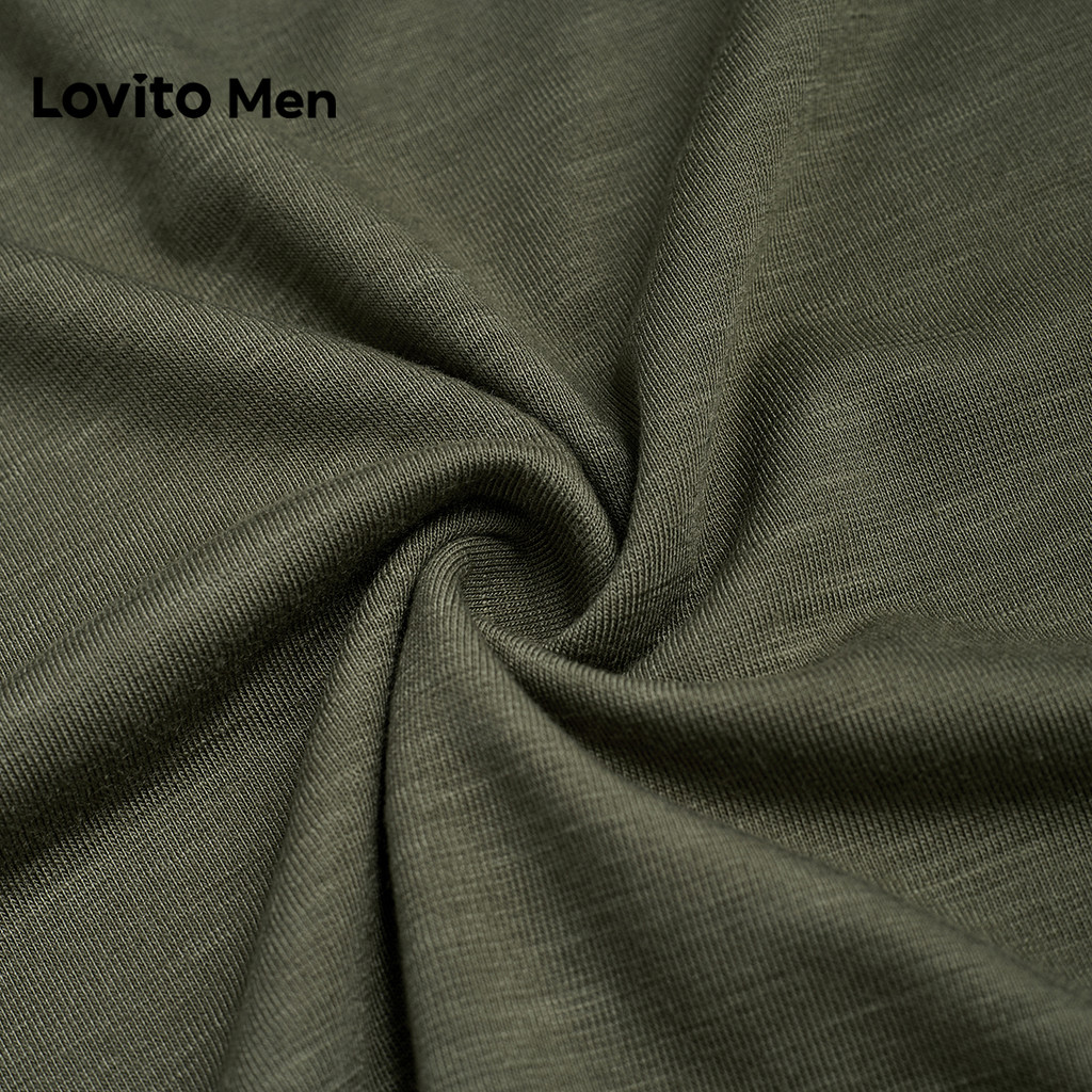 Áo thun Lovito phong cách thường ngày xếp nếp mùa xuân/hè màu xanh rêu cho nam L163ED012
