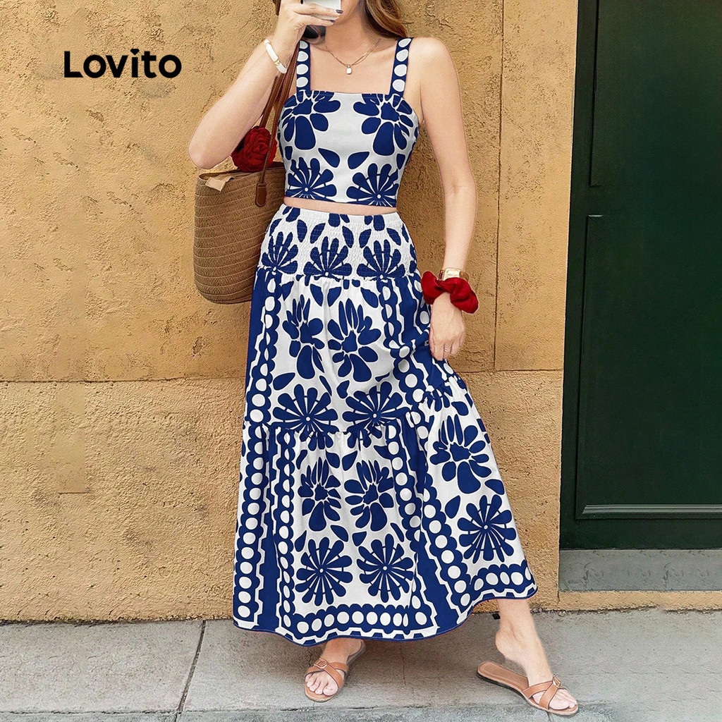 Lovito Áo kiểu Boho hoặc Quần, Họa tiết Xếp ly, Áo hoặc Quần Xuân/Hè cho Nữ. LK3LD378
