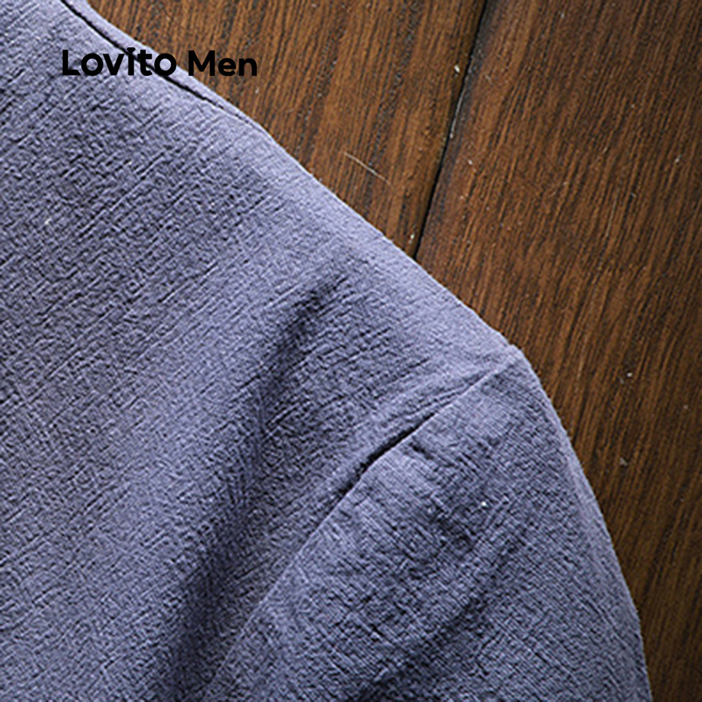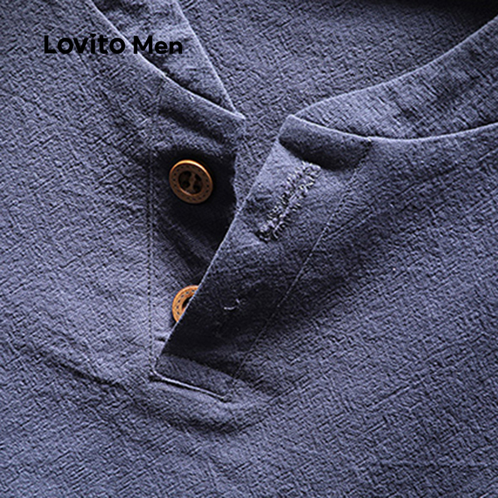 Lovito Áo Phông Nam Cài Nút Mùa Xuân Hè Màu Trắng LNE110092