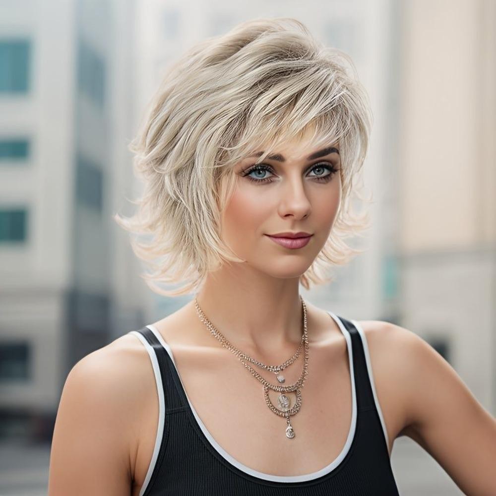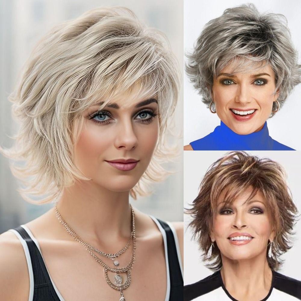 Tóc giả ngắn pixie màu nâu với lớp thẳng chịu nhiệt, phù hợp cho phụ nữ sử dụng hằng ngày