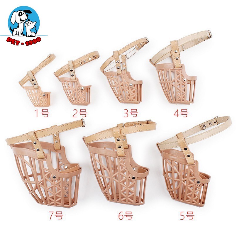 Rọ Mõm Chất Liệu Nhựa An Toàn Cho Chó Kèm Dây Da Giúp Thú Cưng Không Cắn Phá