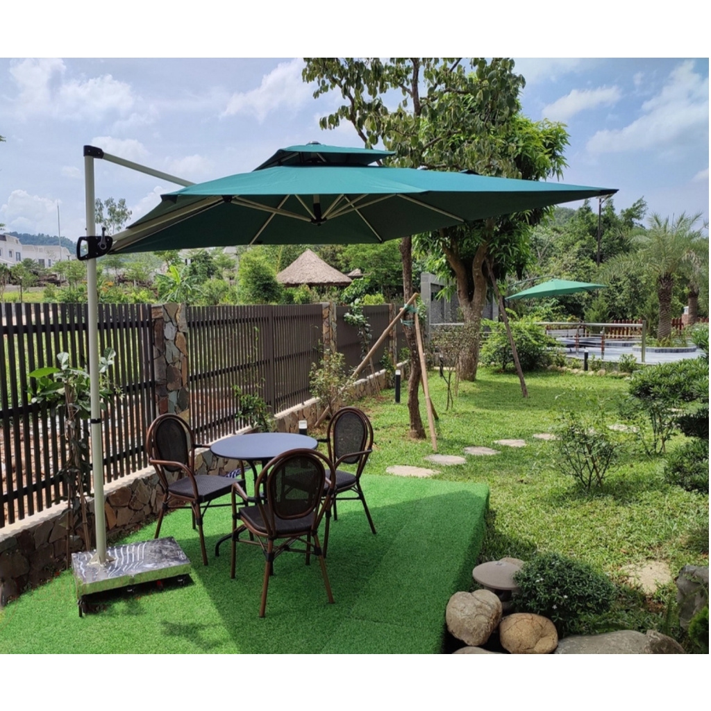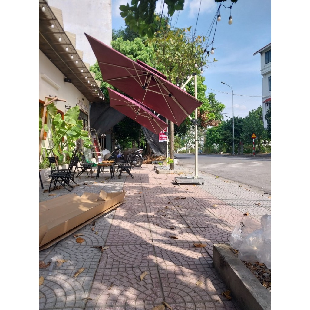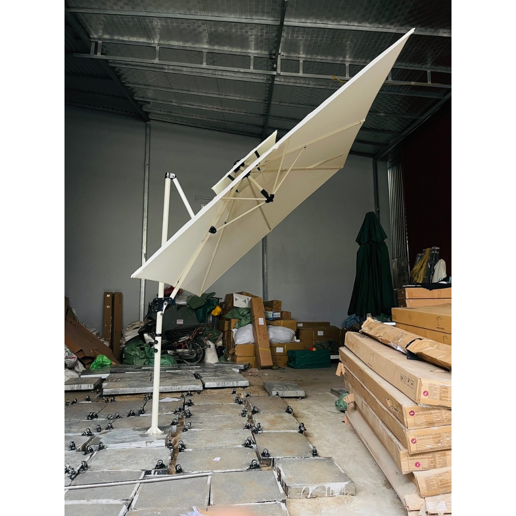Ô Dù Che Nắng Lệch Tâm Vuông 2.5x2.5m – Xoay 360°, Chỉnh Nghiêng, Vải Dày Chống Tia UV (đã kèm vỏ chân đế, chưa bê tông)