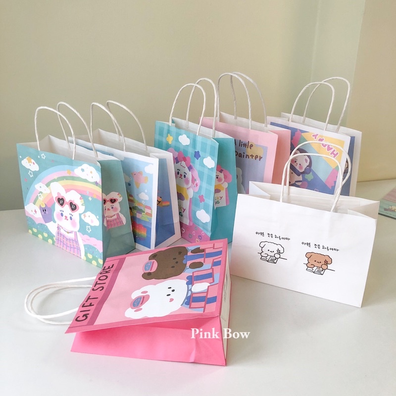 Túi giấy hình con THỎ/GẤU/CARO/CAPYBARA 27cm 21cm 14cm 11cm 8cm màu HỒNG/ĐỎ/XANH/TÍM