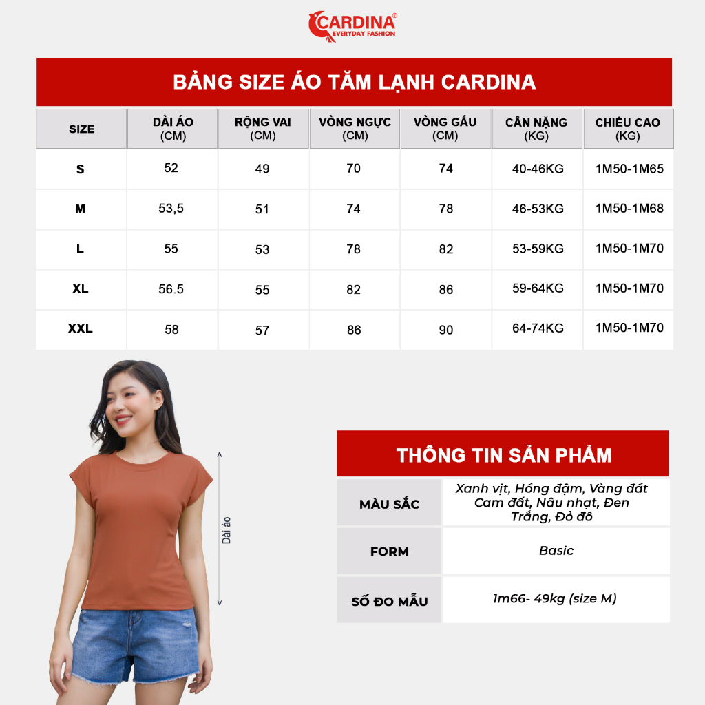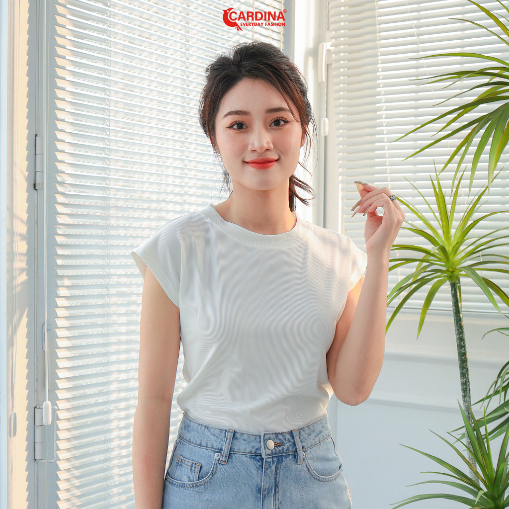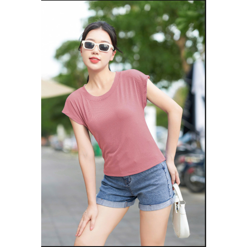 Áo thun nữ CARDINA chất tăm lạnh cổ thuyền tay hến co gián dáng basic 5AFC06