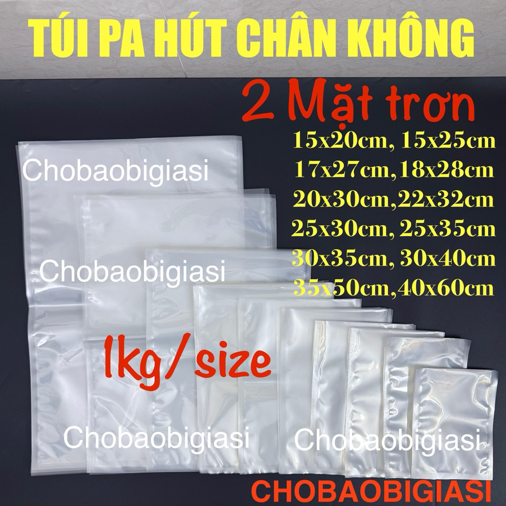 1Kg TÚI PA HÚT CHÂN KHÔNG 2 MẶT TRƠN dày 10dem, đủ size hàng dày đẹp, hàn biên chắc chắn, chuyên dùng cho hàng đông lạnh