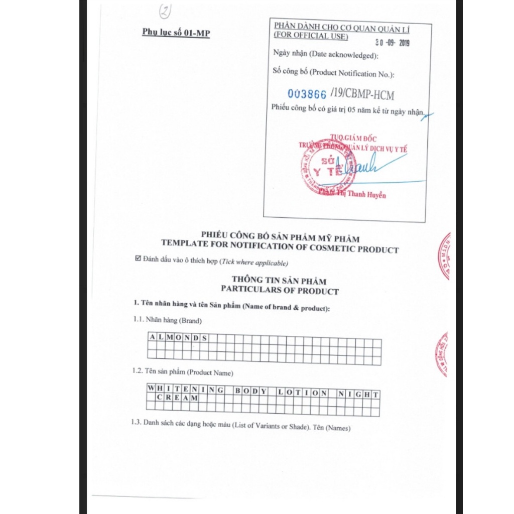 Kem Trắng Da Body ALMONDS Kem Body Siêu Trắng 200gr