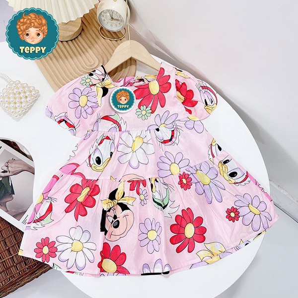 Đầm, Váy mickey hoa chất liệu mát cho bé gái