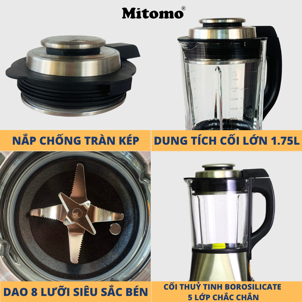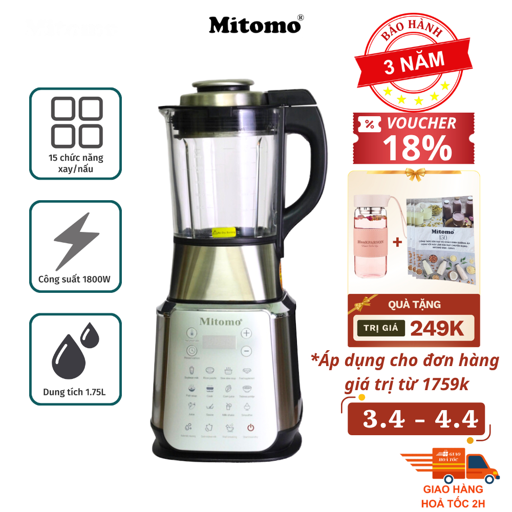 Máy làm sữa hạt, Nấu cháo Mitomo MSH-539V1, Công suất 1800W - Bảo hành 3 năm