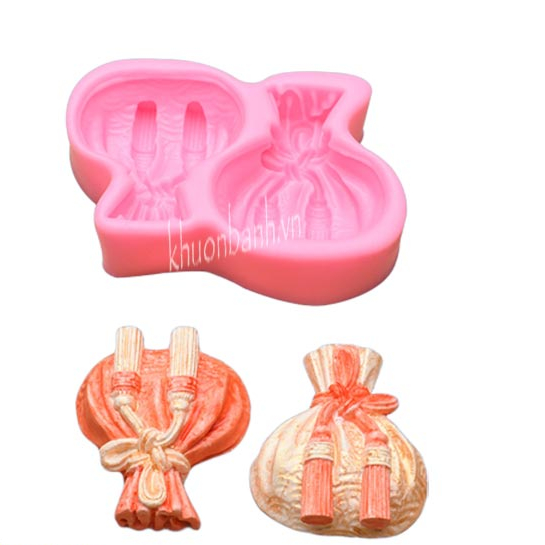 Vỉ 2 túi tiền túi may mắn khuôn silicon 4d làm rau câu nến đất nặn bánh nướng