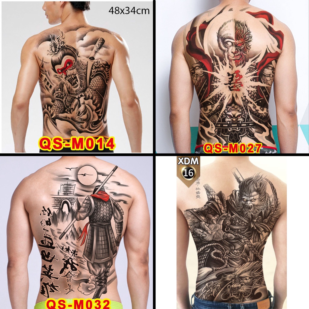 [Loại Ngắn Ngày] Hình Xăm Dán Kín Lưng Ngộ Không (35x48cm)