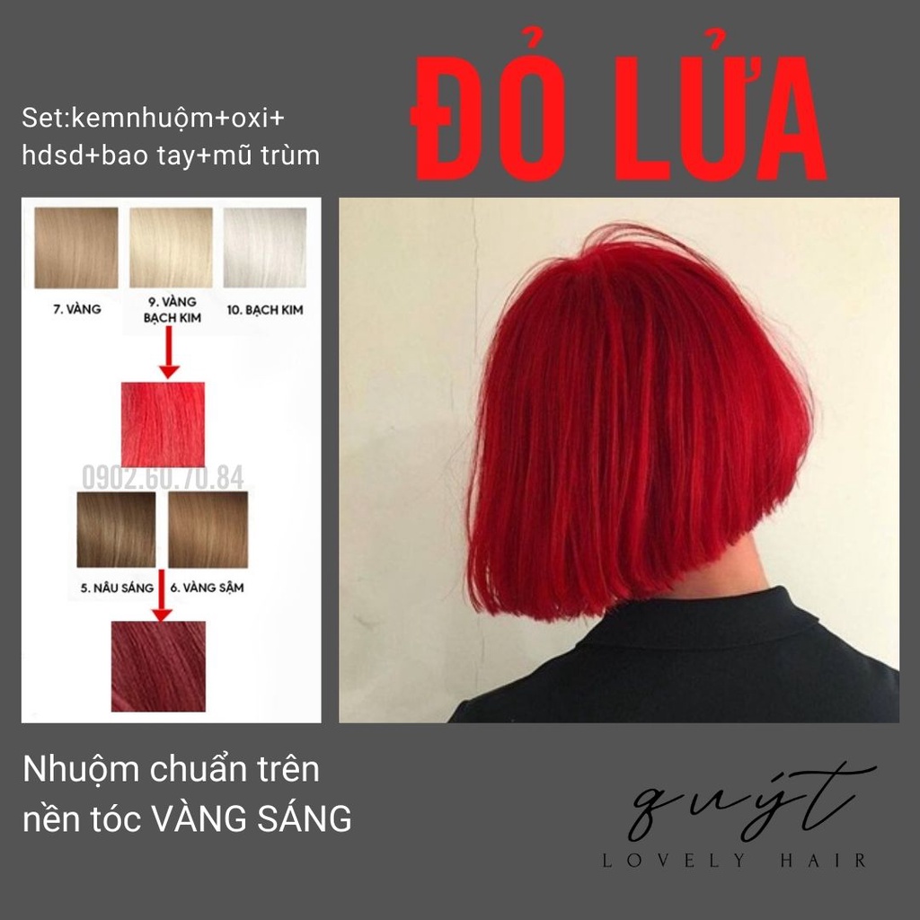 Kem nhuộm tóc thảo dược màu đỏ lửa, nhuộm trên nền tóc vàng sáng, tặng oxy