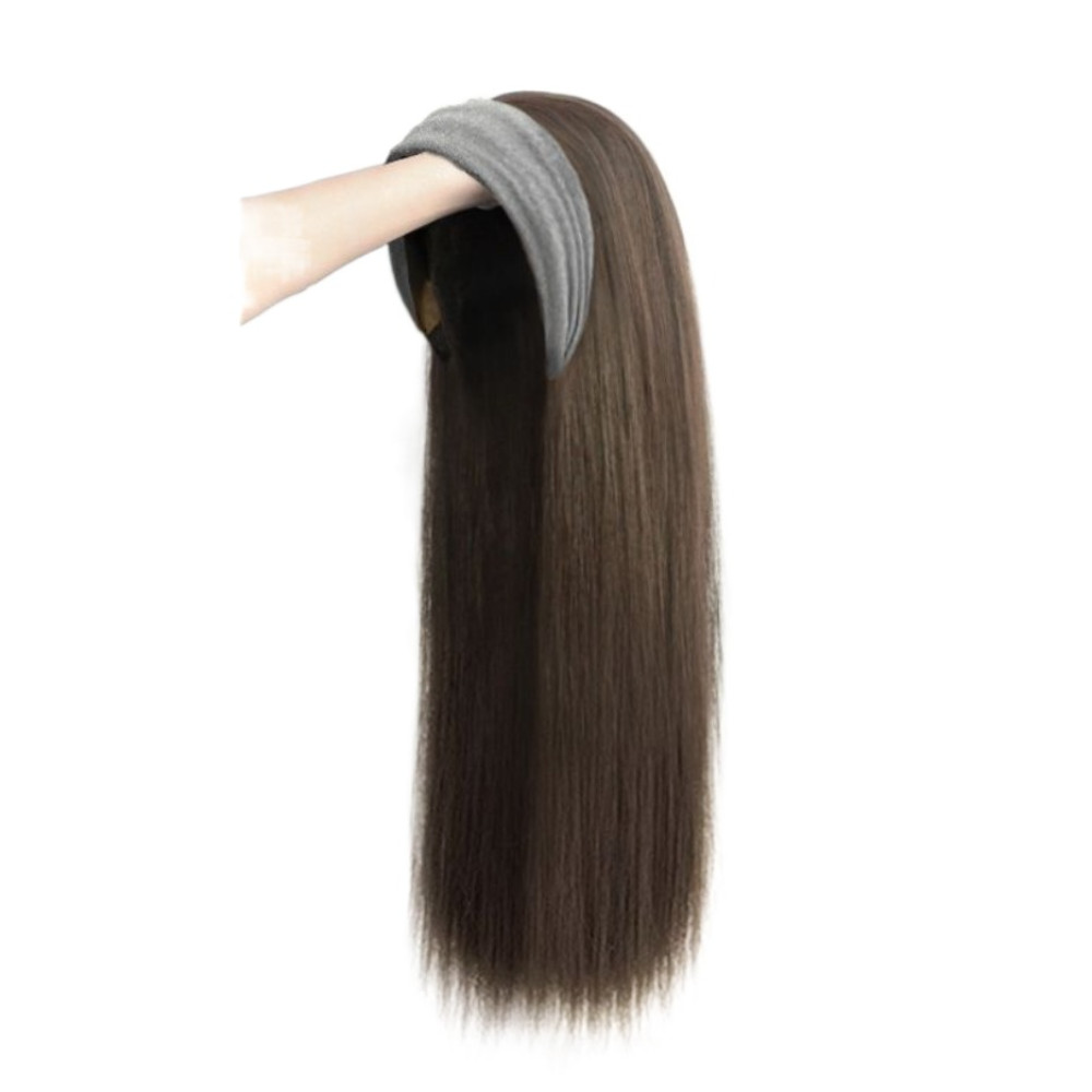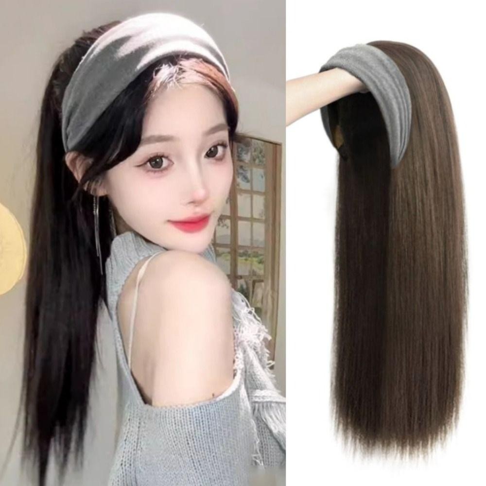Tóc Giả Lace Front Màu Xám Rộng, Phong Cách Hàn Quốc, Dây Cột Nửa Đầu và Tóc Thêm Dài Thẳng Cho Phụ Nữ
