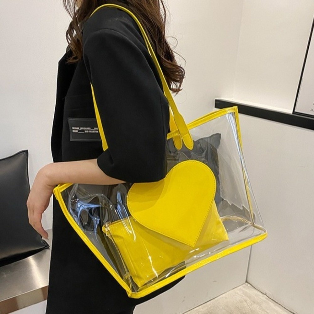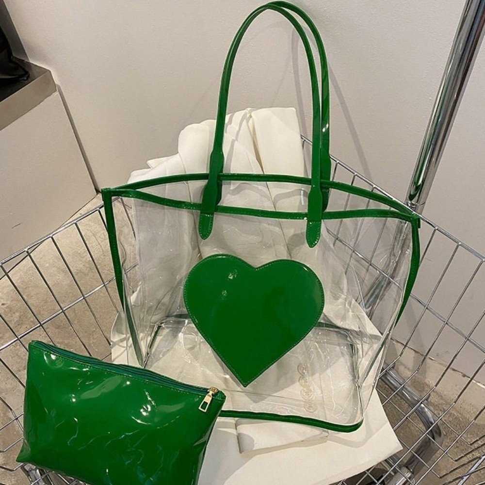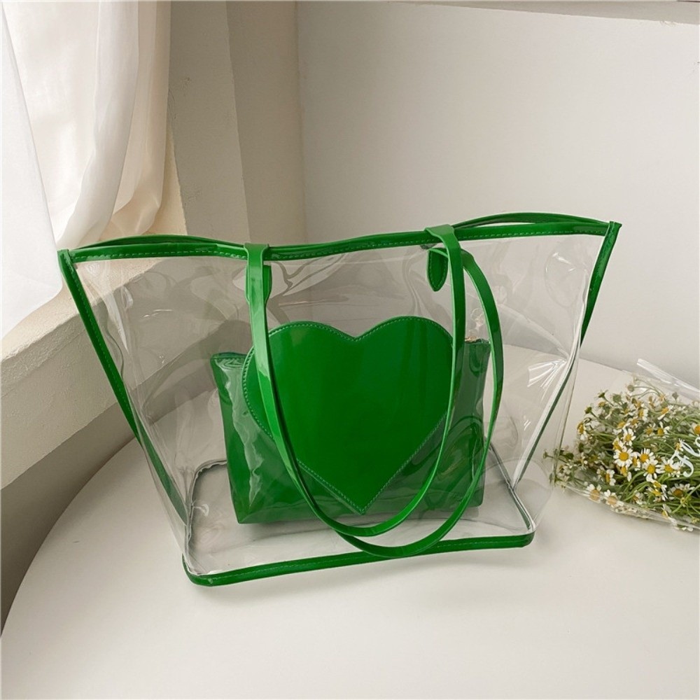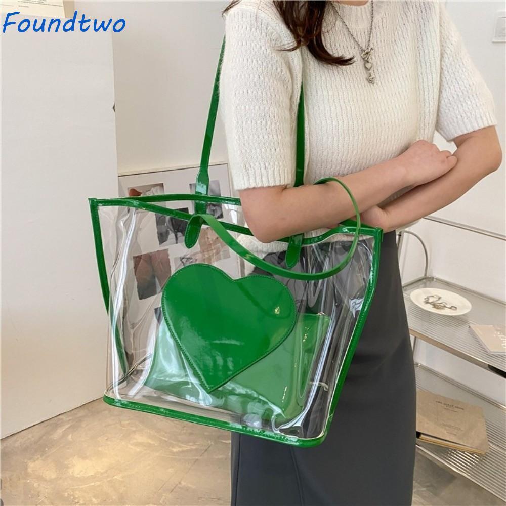 Túi đeo vai FOUNDTWO Jelly Color, Túi xách trong suốt tương phản màu sắc dung tích lớn, thời trang chống nước có túi bên trong Túi đi biển đa năng dành cho nữ