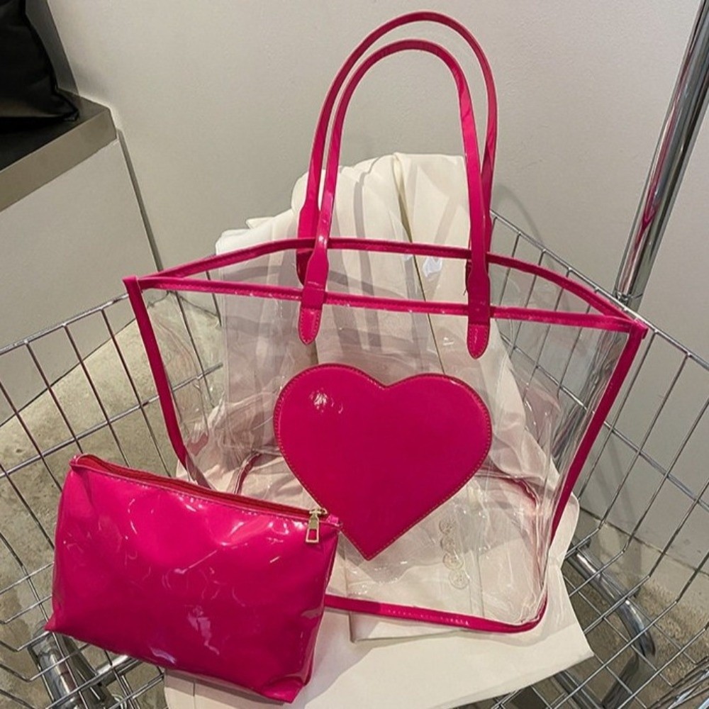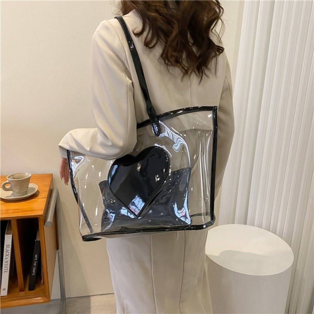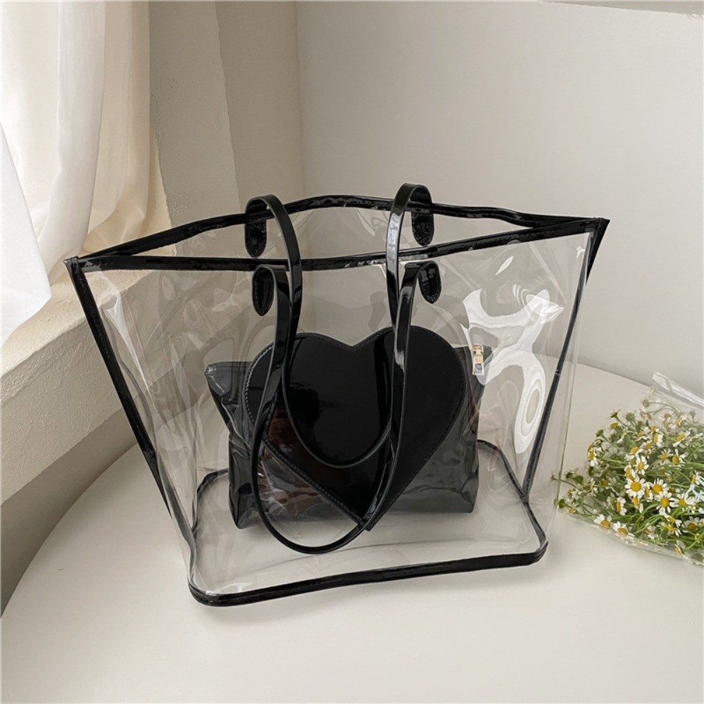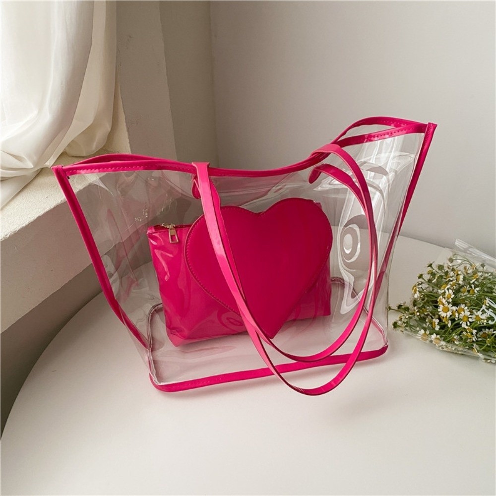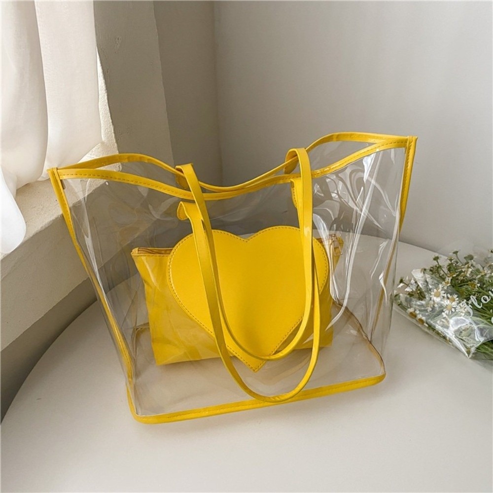 Túi đeo vai FOUNDTWO Jelly Color, Túi xách trong suốt tương phản màu sắc dung tích lớn, thời trang chống nước có túi bên trong Túi đi biển đa năng dành cho nữ