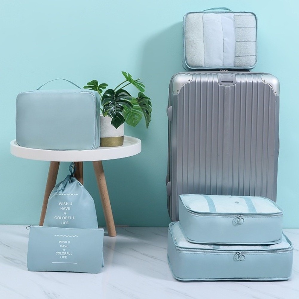 ZYJC 7 Cái / bộ Vali Đóng Gói Khối Bộ, Túi Đựng Đồ Du Lịch Gấp Dung Tích Lớn, Hộp Đựng Đồ Vệ Sinh Quần Áo Di Động Chống Thấm Nước Túi Đựng Giày Hành Lý
